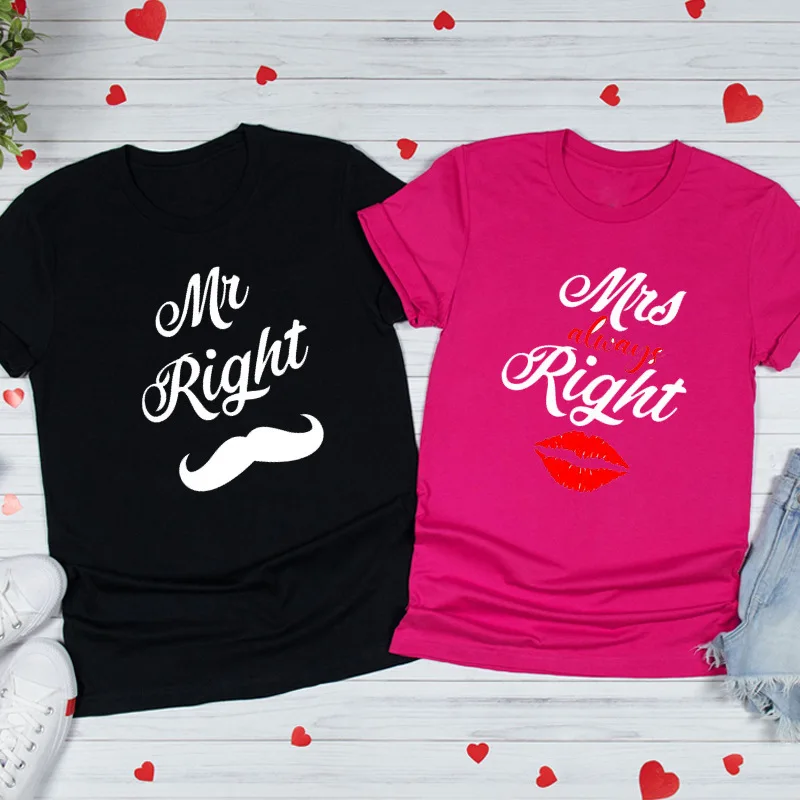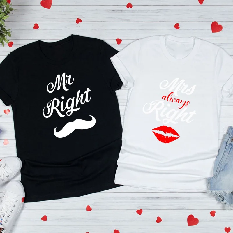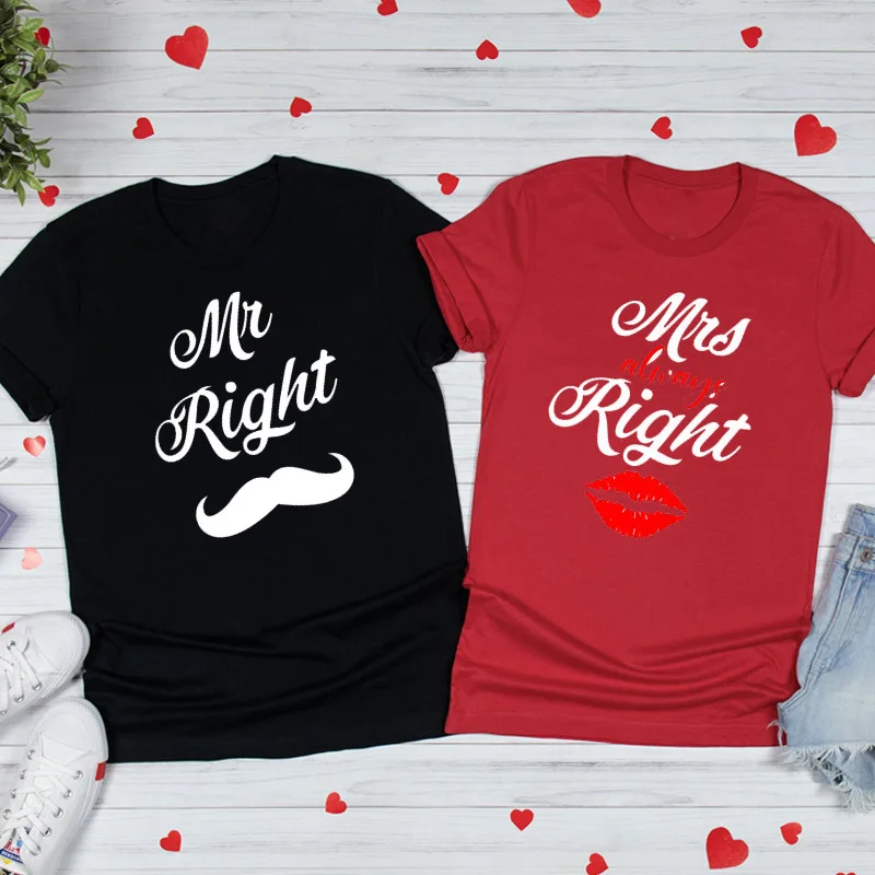 MR Right Mrs Always Right Print LoversT Shirt Couple Short Sleeve O Neck Loose Tshirt Women Man Tee Shirt Tops Camisetas Mujer