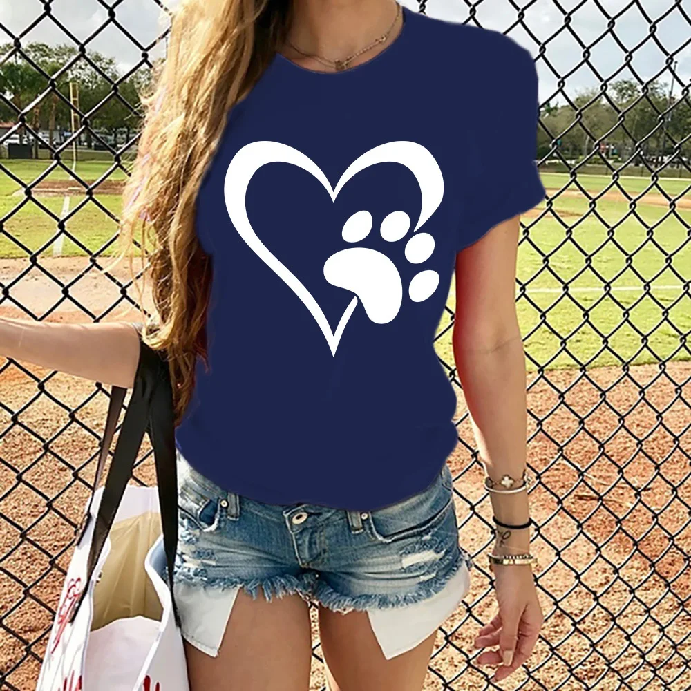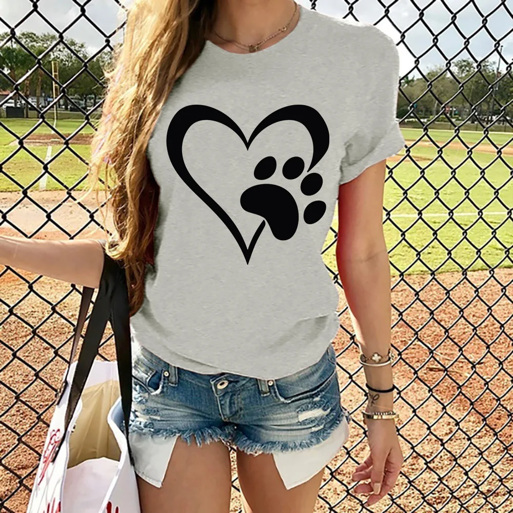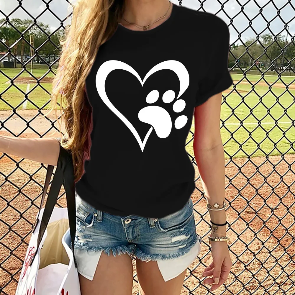 Cotton 100% Love Print Short-sleeved Pullover Round Neck Casual Loose T-shirt Woman Tops Aesthetic Clothes