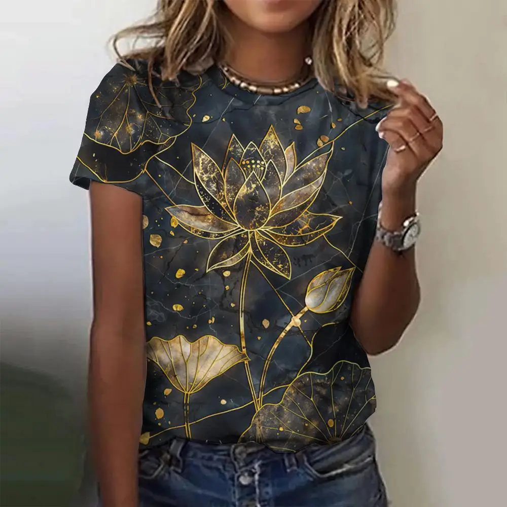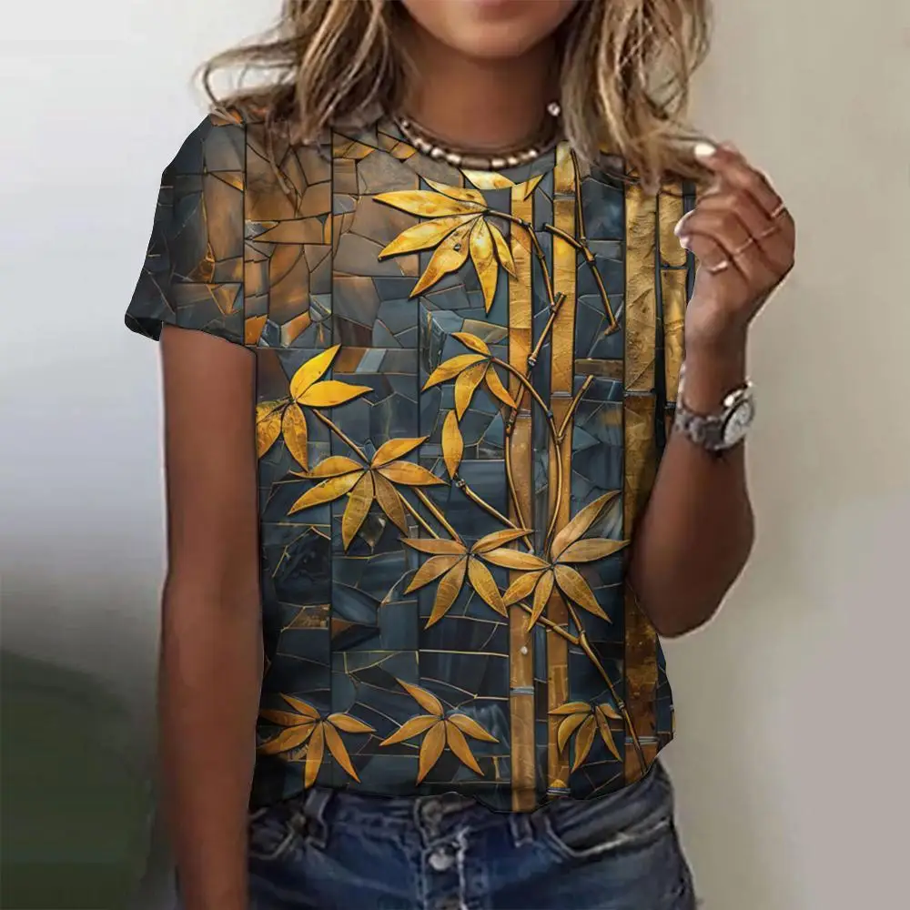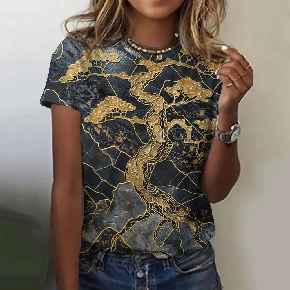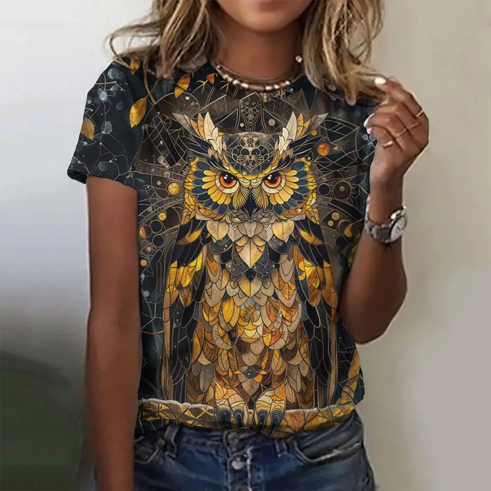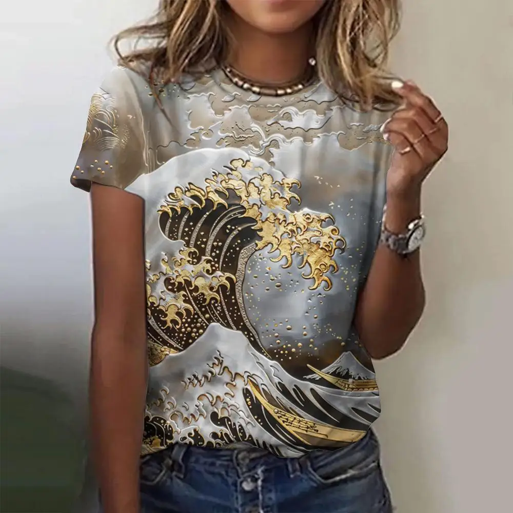 Fashionable 3d Printed Landscape Animal Style Summer Round Neck Short Sleeved Top T-Shirt Casual Versatile Loose Oversized Women