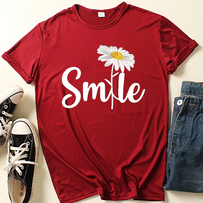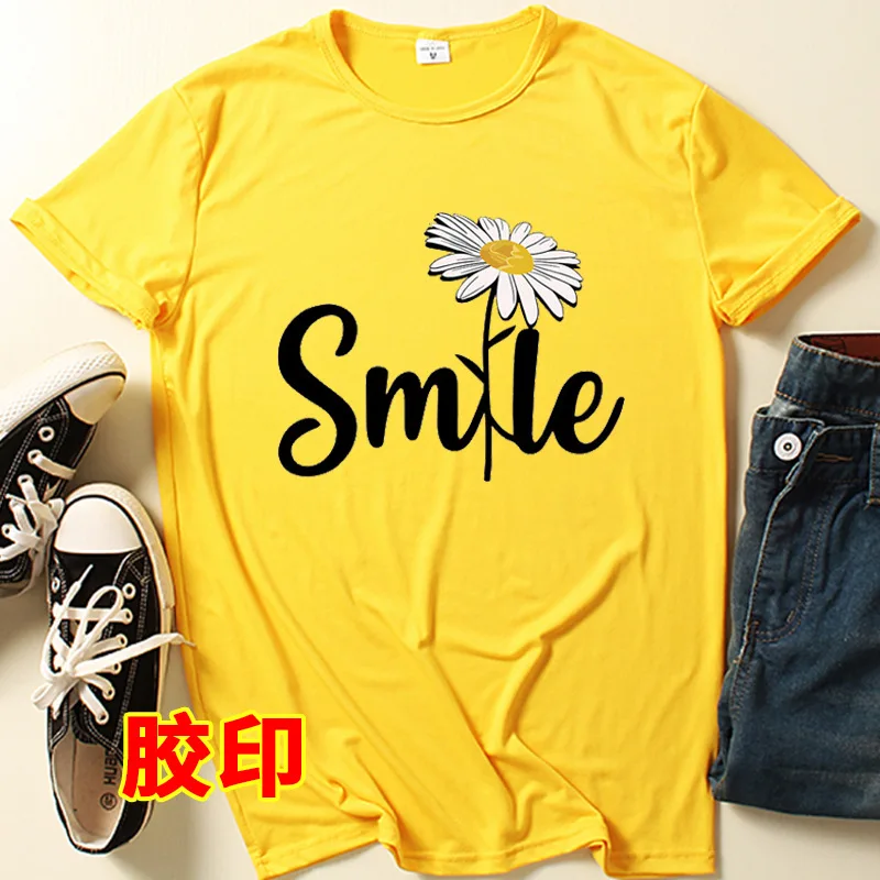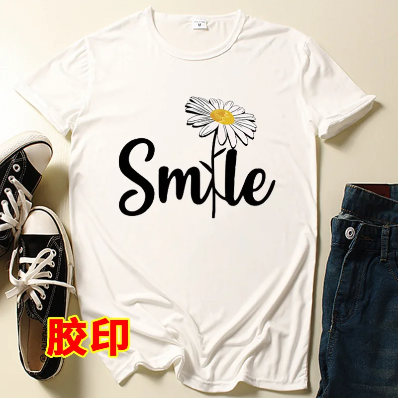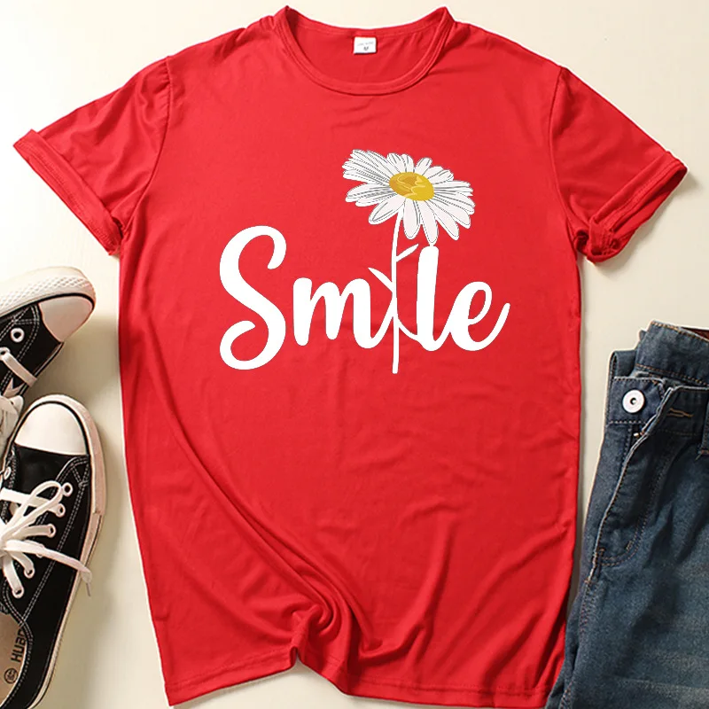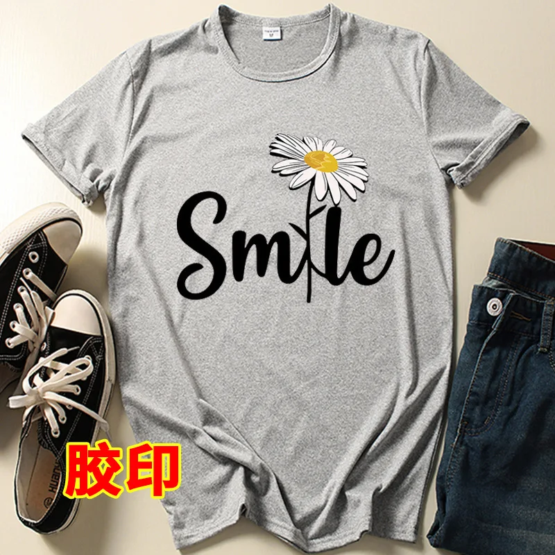 Smile Daisy Print T Shirt Women Short Sleeve O Neck Loose Tshirt Summer Women Tee Shirt Tops Clothes Camisetas Mujer