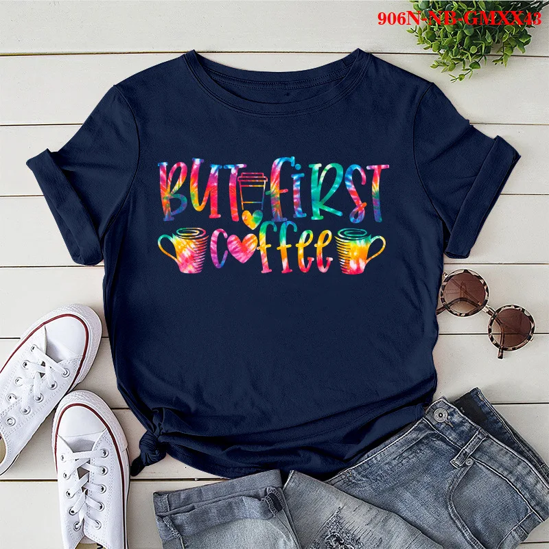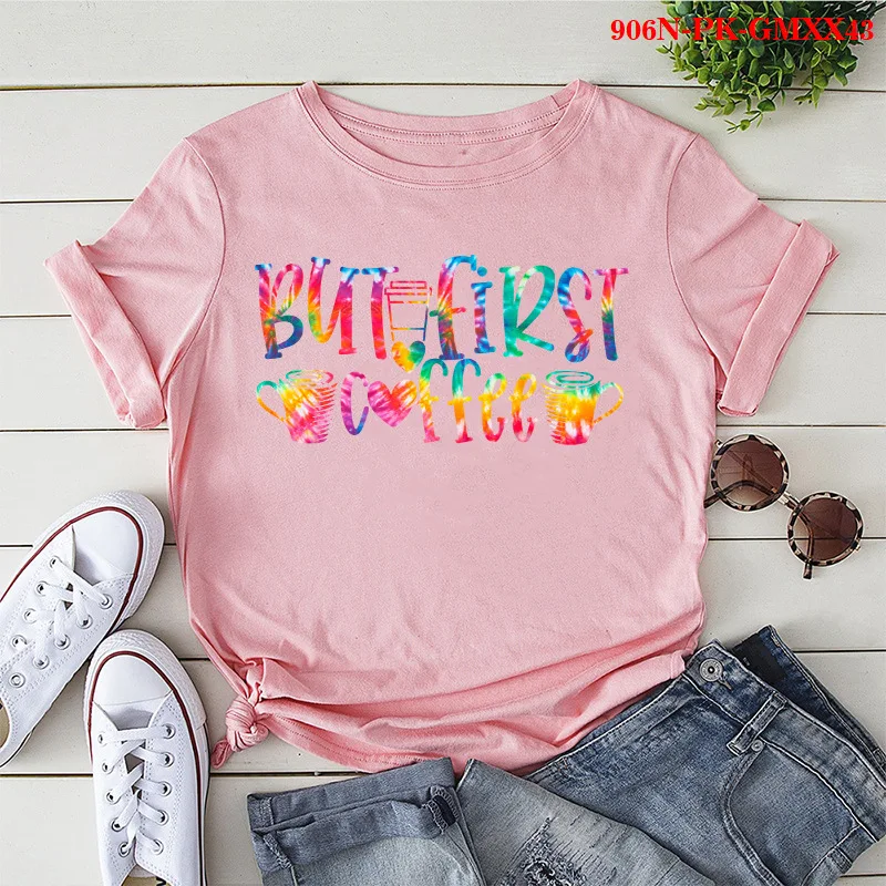 But First Coffee Colorful Print Women T Shirt Short Sleeve O Neck Loose Women Tshirt Ladies Tee Shirt Tops Camisetas Mujer