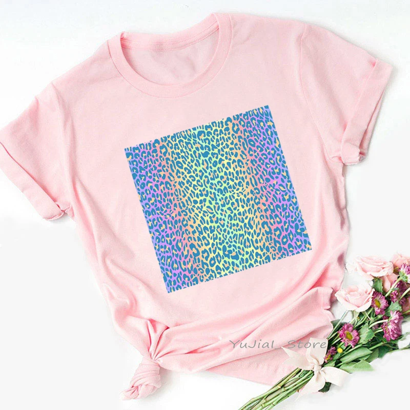 Pink Leopard Tshirt Women Clothes 2024 Funny T Shirt Femme Harajuku Kawaii Summer Fashion Female T-Shirt Streetwear Tops