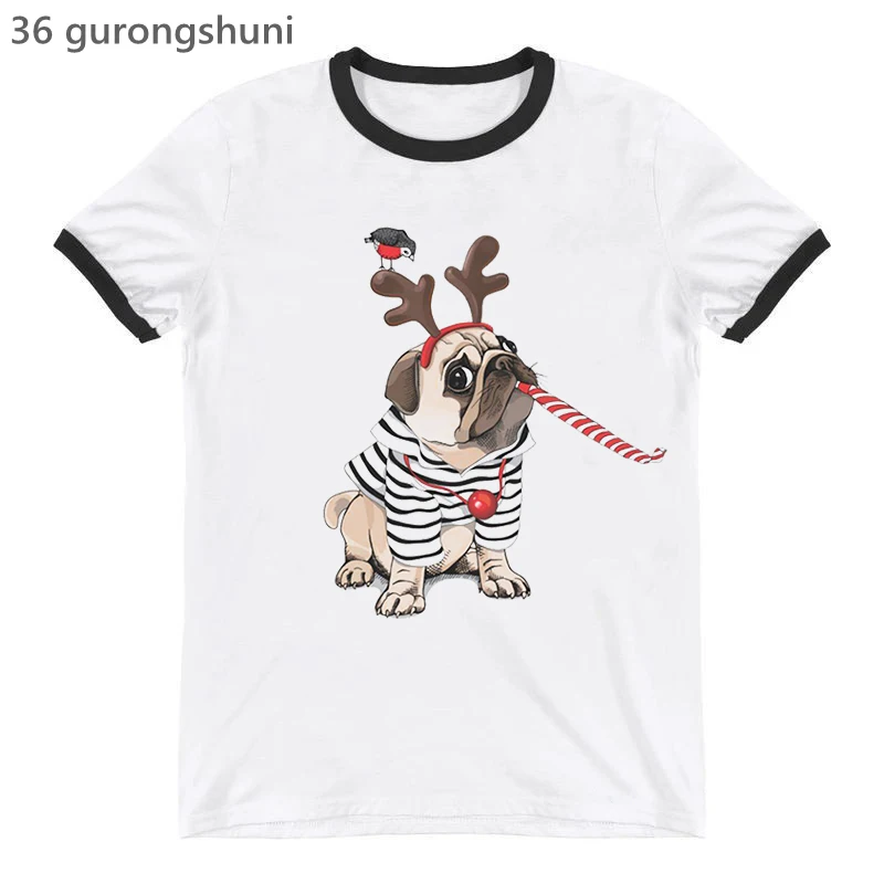 Funny Pugs Flowers Graphic Print T-Shirt Women'S Clothing Harajuku Kawaii Dog Lover Tshirt Femme Summer Fashion T Shirt Female