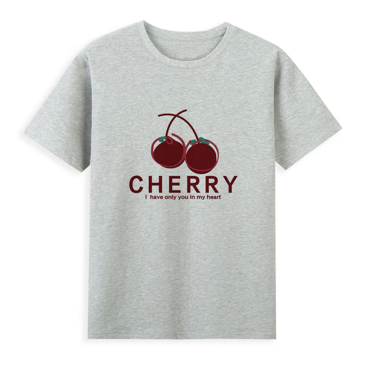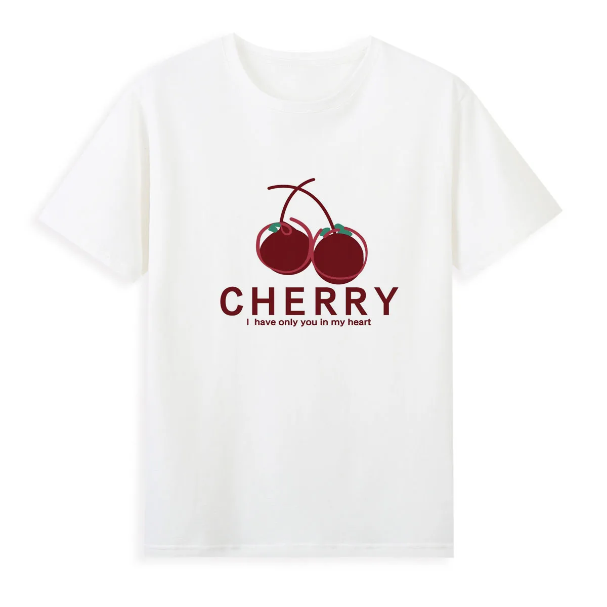 Hand-painted cherry cute print T-shirt Exclusive sale of pink beautiful short-sleeved women Brand summer short sleeve A1-19