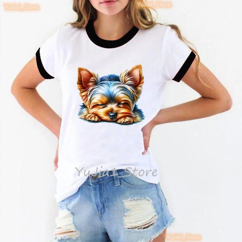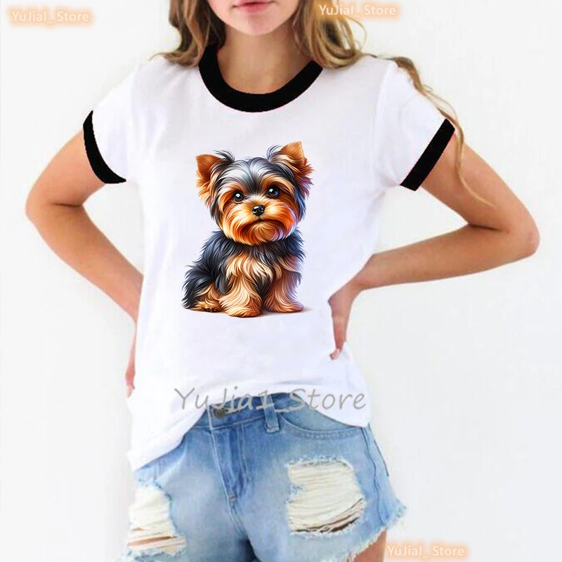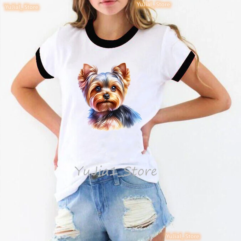Watercolor Yorkshire Terrier Animal Printed Tshirt Girls Funny T Shirt Women Harajuku Kawaii Clothes Summer Fashion T-Shirt