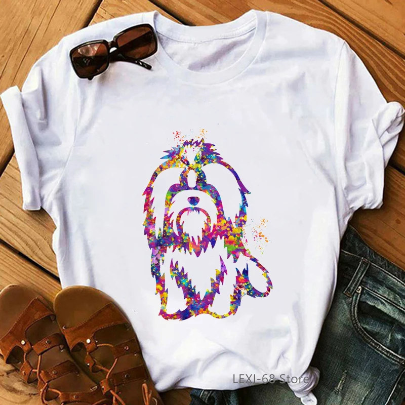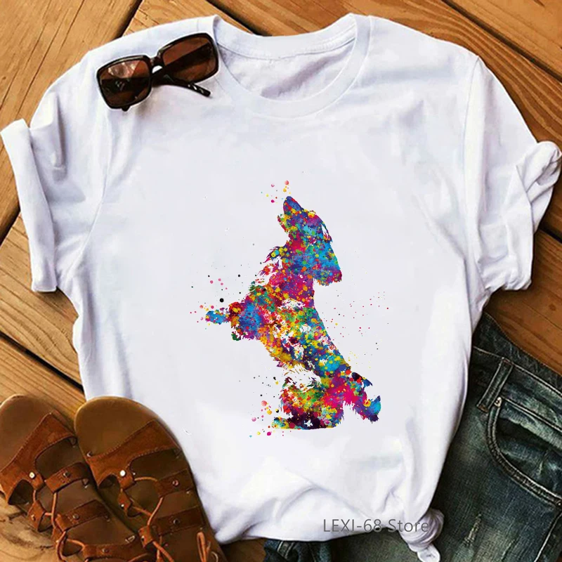 Funny T Shirt Women Watercolor Dog Love Cat Animal Print Tee Shirt Femme Chihuahua/Teddy T-Shirt Female Harajuku Shirt Wholesale