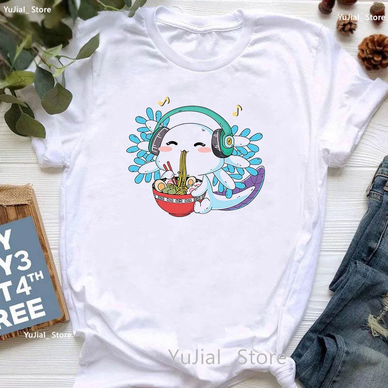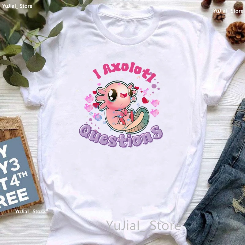 Kawaii Axolotl Love Boba Print Tshirt Girls Japanese Style Casual T Shirt Women Summer Tops Fashion T-Shirt Female Streetwear
