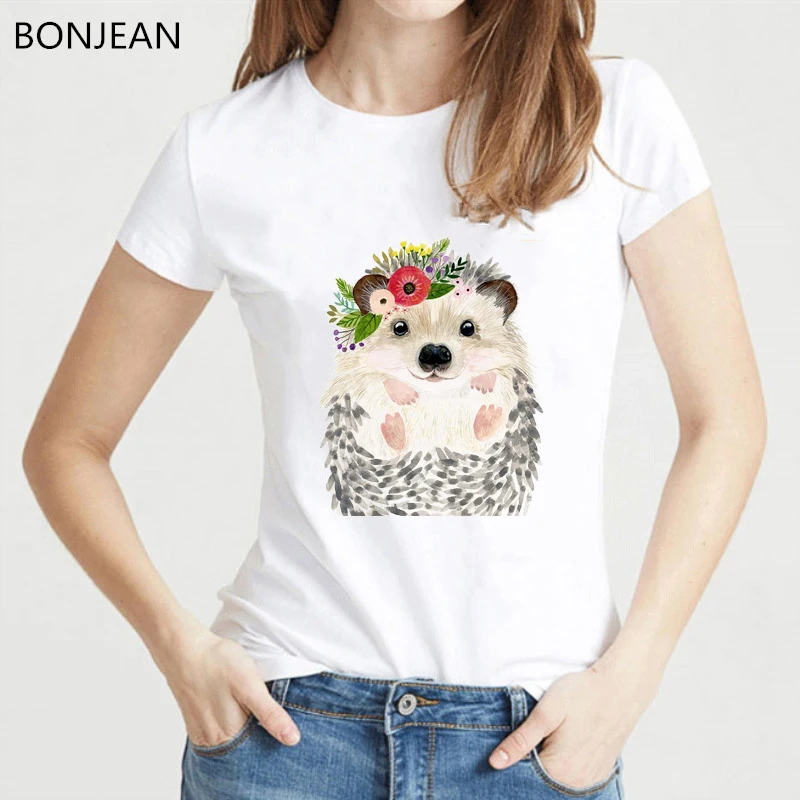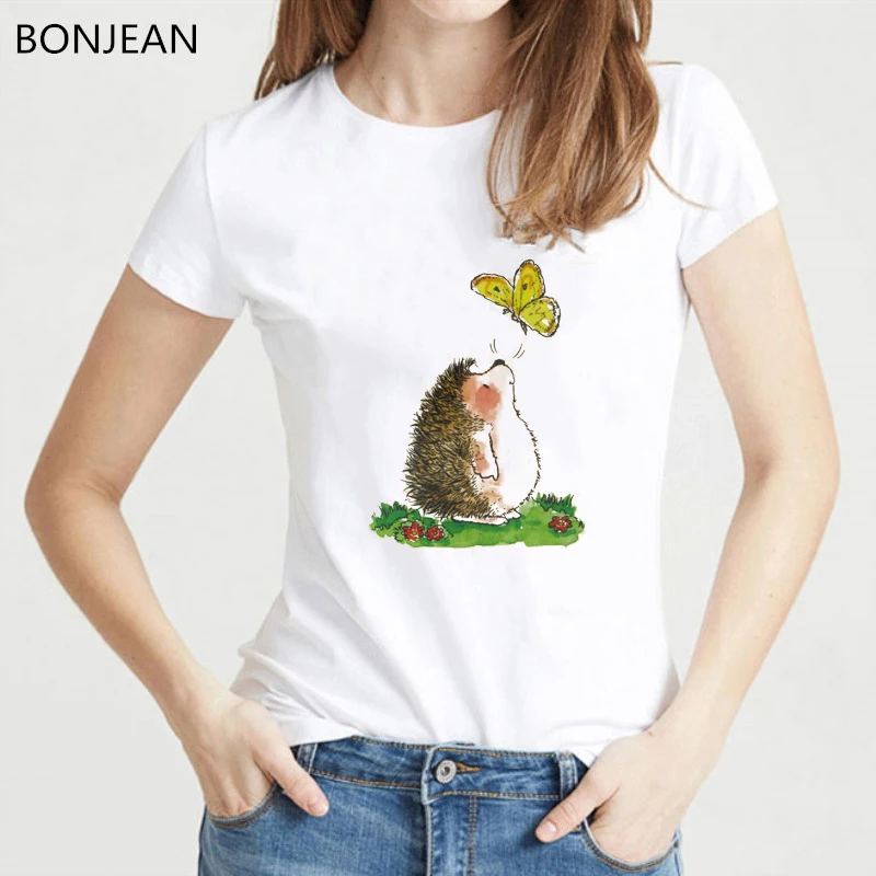 Women Clothes 2024 Cute Butterfly Mushrooms Hedgehog T Shirt Femme White Summer Top Female Animal Print Tshirt Drop Shipping