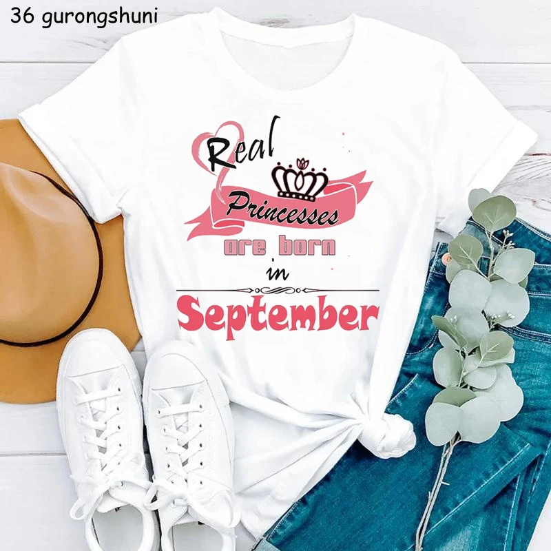 T-Shirt Women Real Princess Are Born In May/June/July/August/September Letter Print Tshirt Girls Birthday Gift T Shirt Female