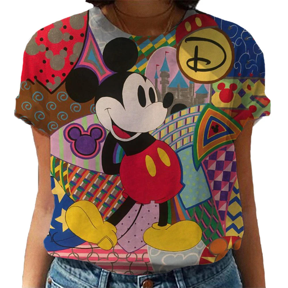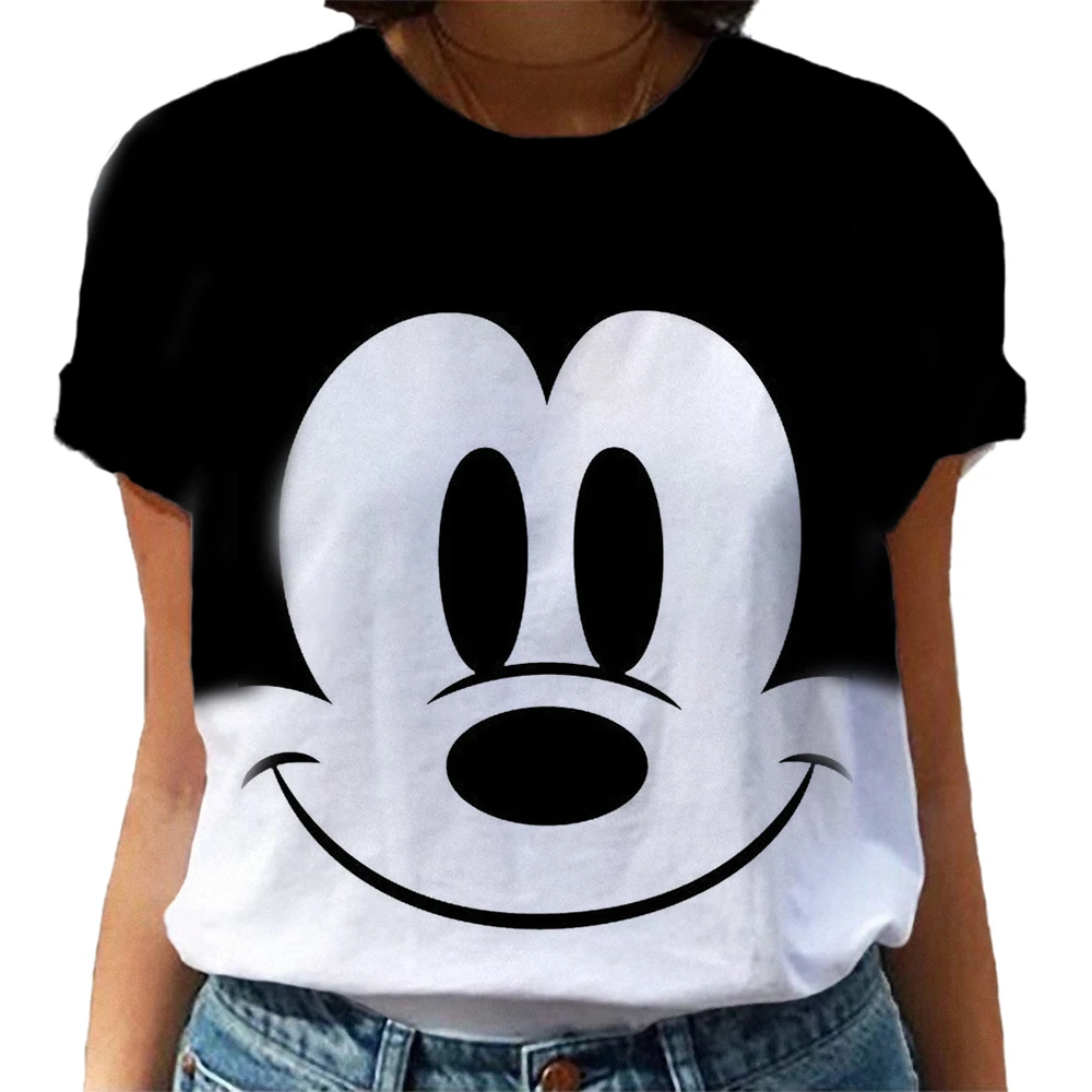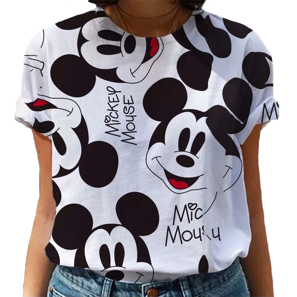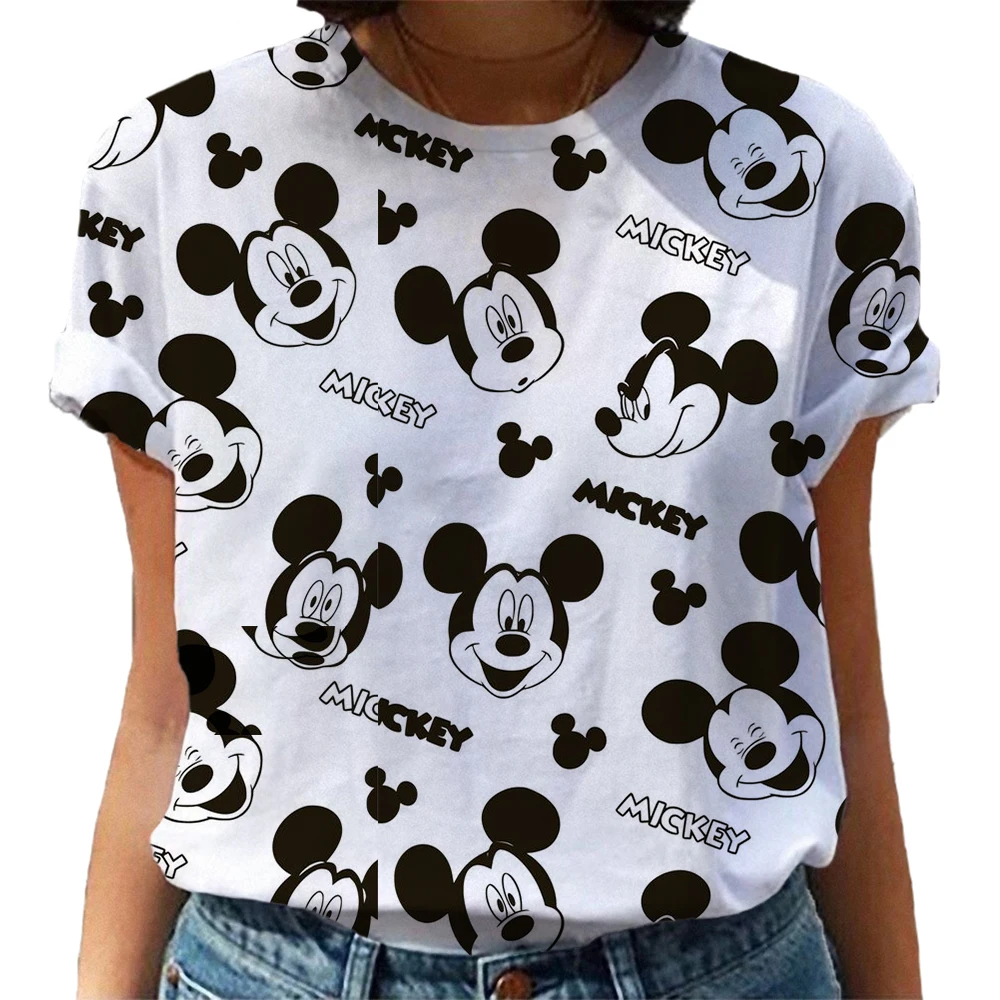 Fashion Summer Women's T-shirt White o neck O Street Women's T-shirt Disney Mickey Mouse Cartoon T-shirt Top Ladies S-3XL