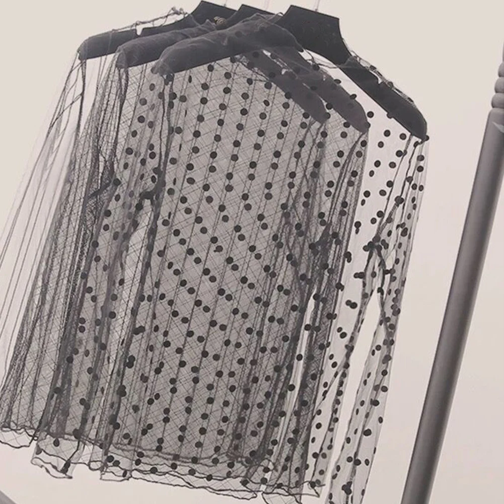 Women's Sexy Mesh Sheer Lace T-Shirts Perspective Long Sleeve Stand Collar Mesh Tops Striped Polka Dot Stars Party Tee Shirts