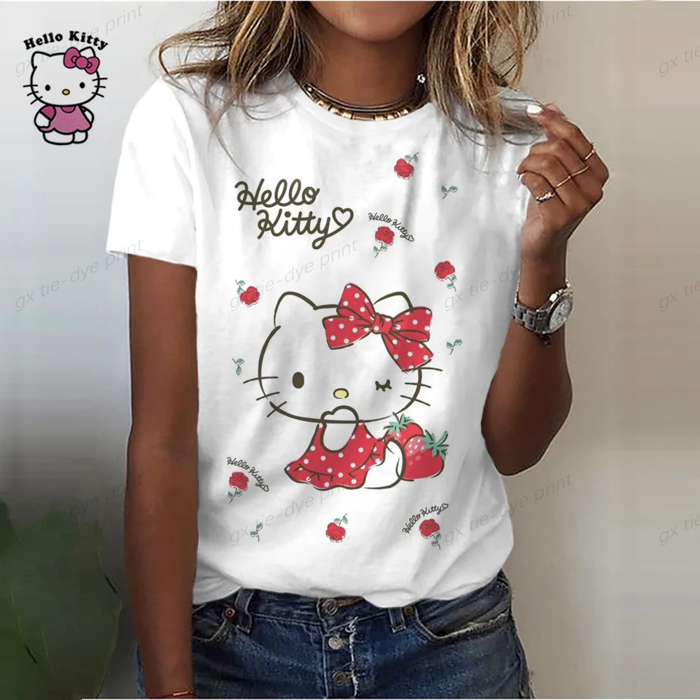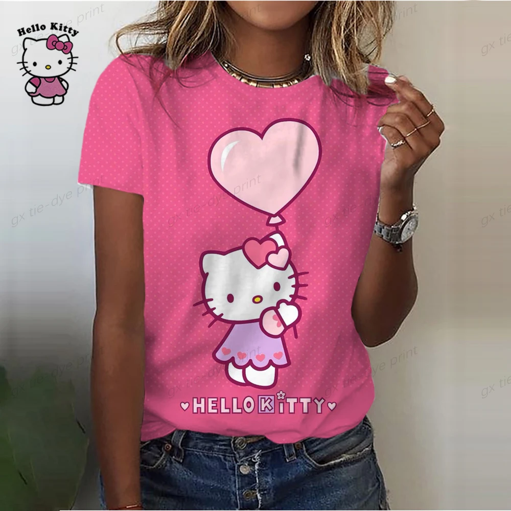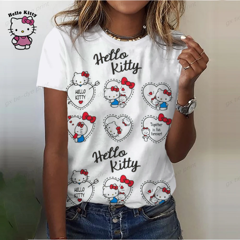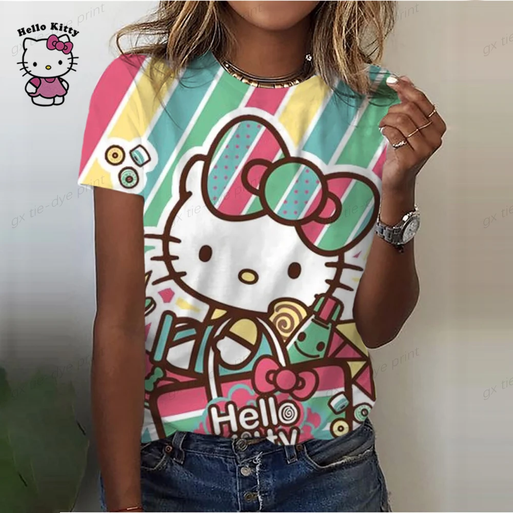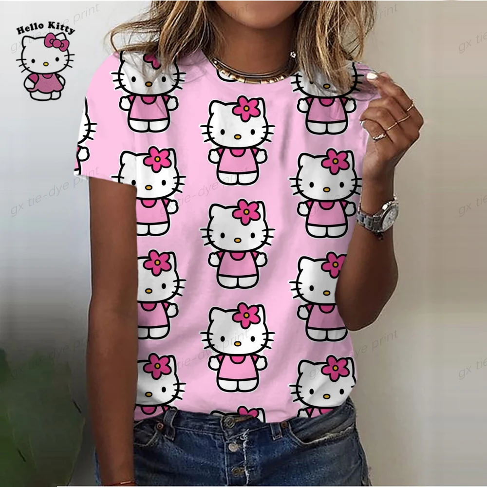 Name | New Fashion Ladies Street Hello Kitty 3D Abstract cartoon Hello Kitty T Shirts Casual Short Sleeve O-Neck Loose Tops Summer Size |