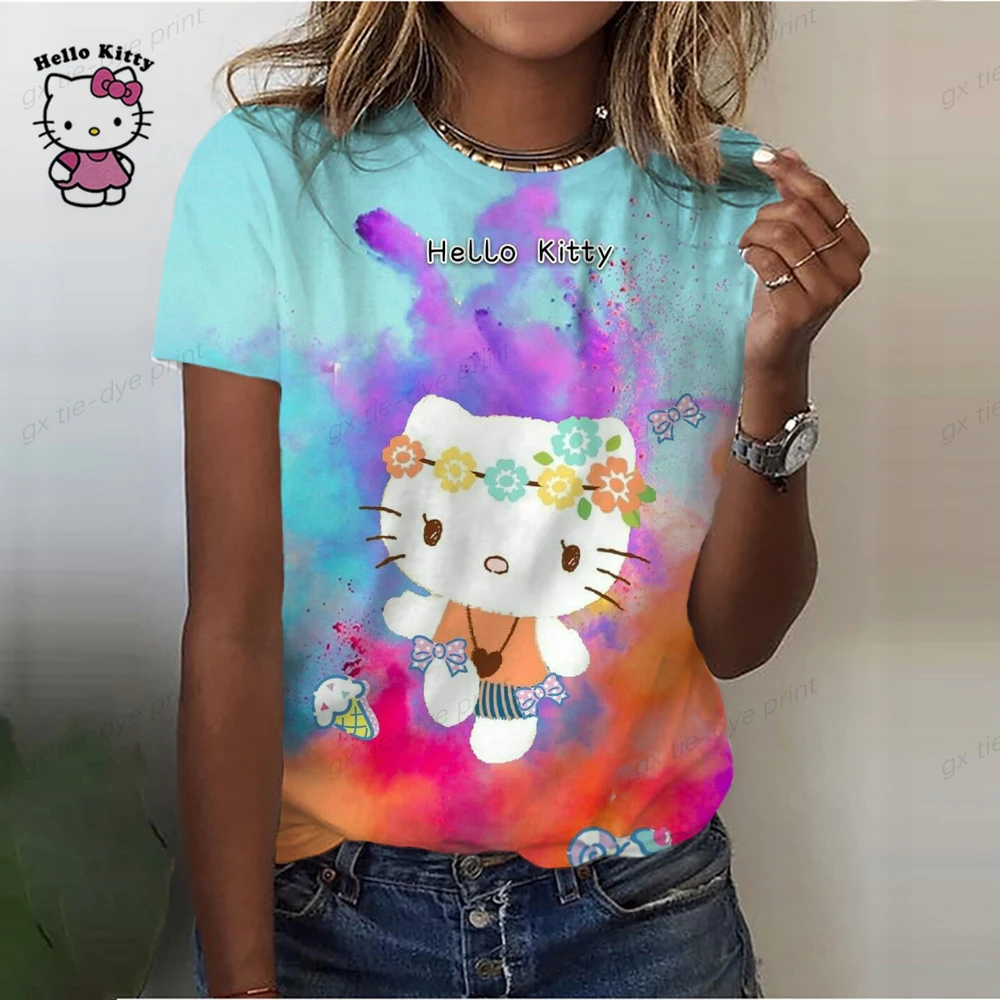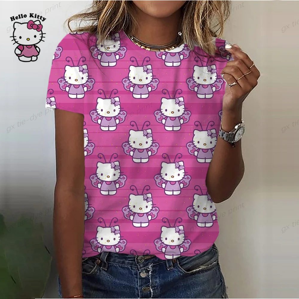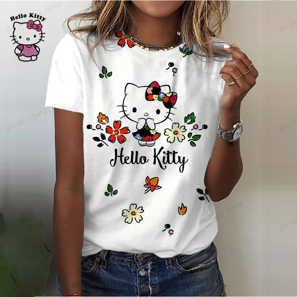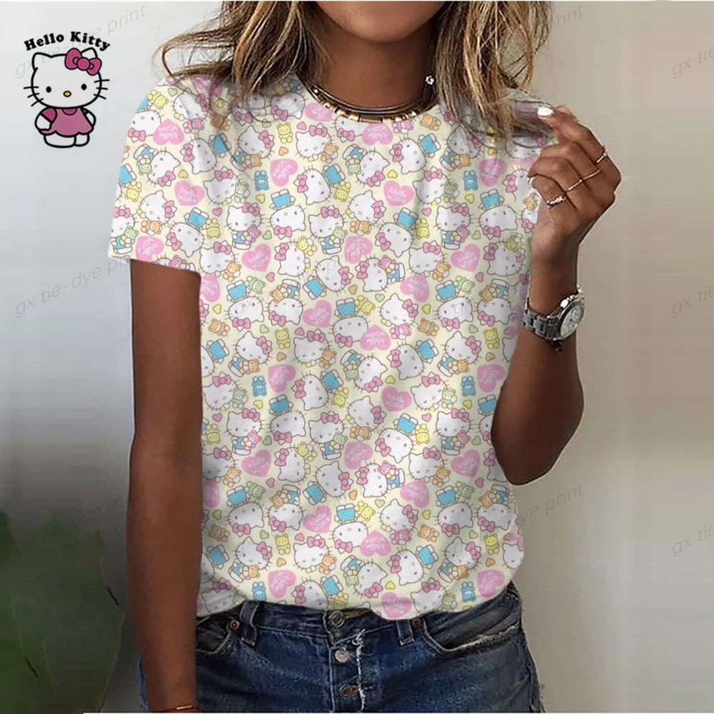 Kawaii Hello Kitty Cartoon Punk Print T Shirt Women Harajuku 90s Cute T-shirt Female Funny Streetwear Graphic Clothes Tops