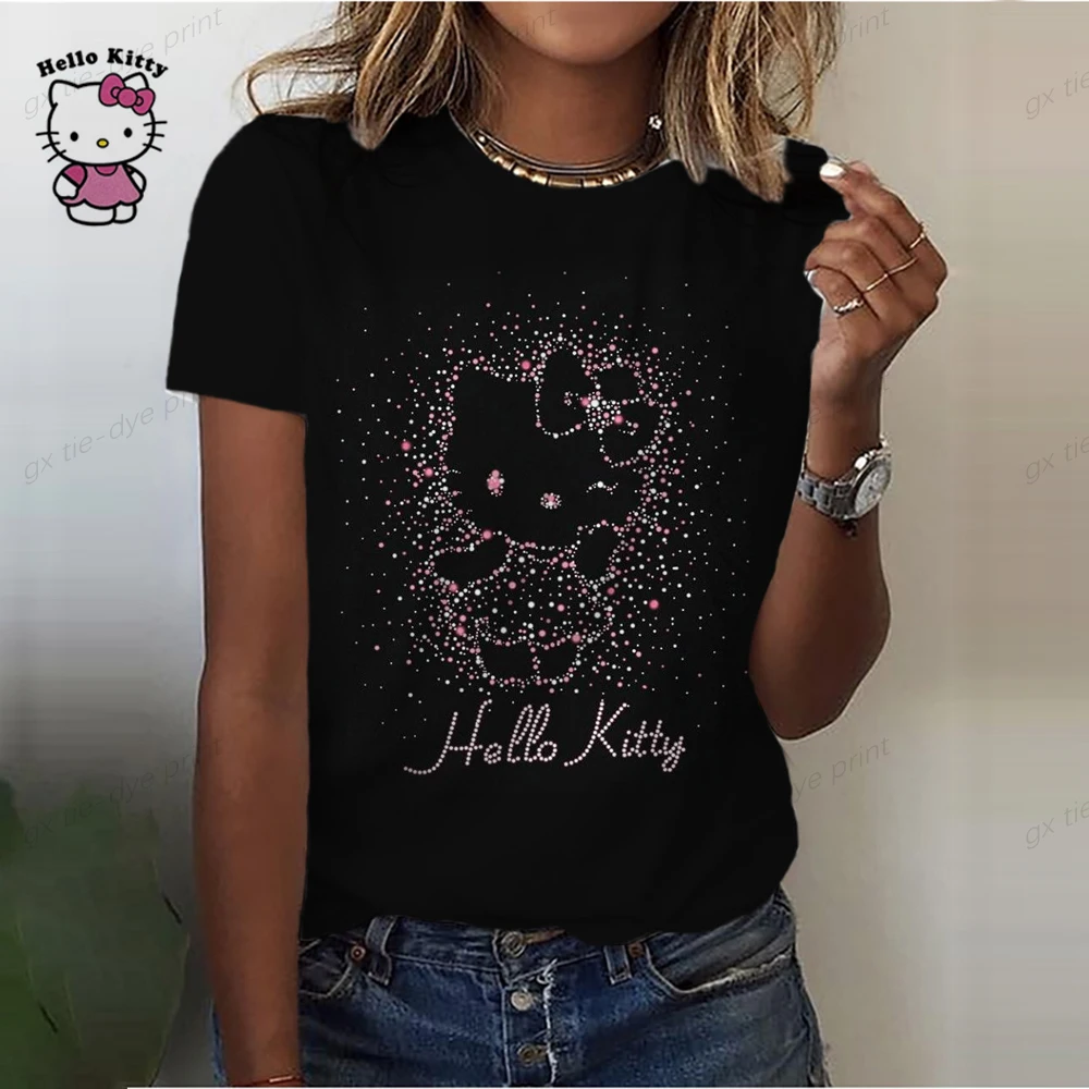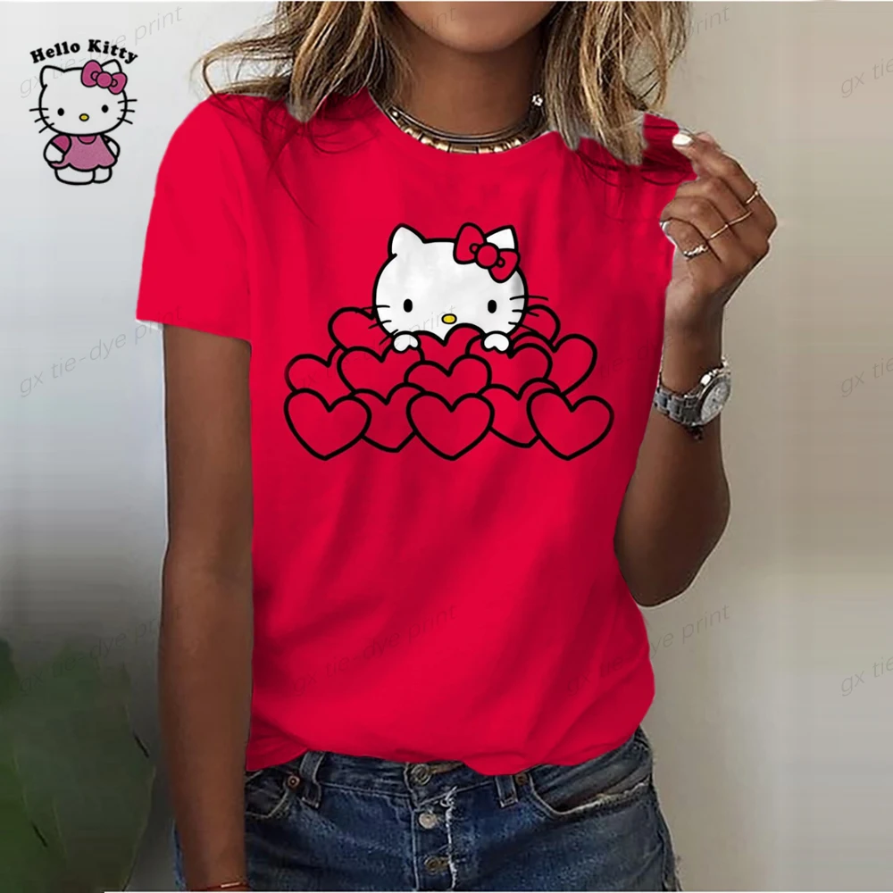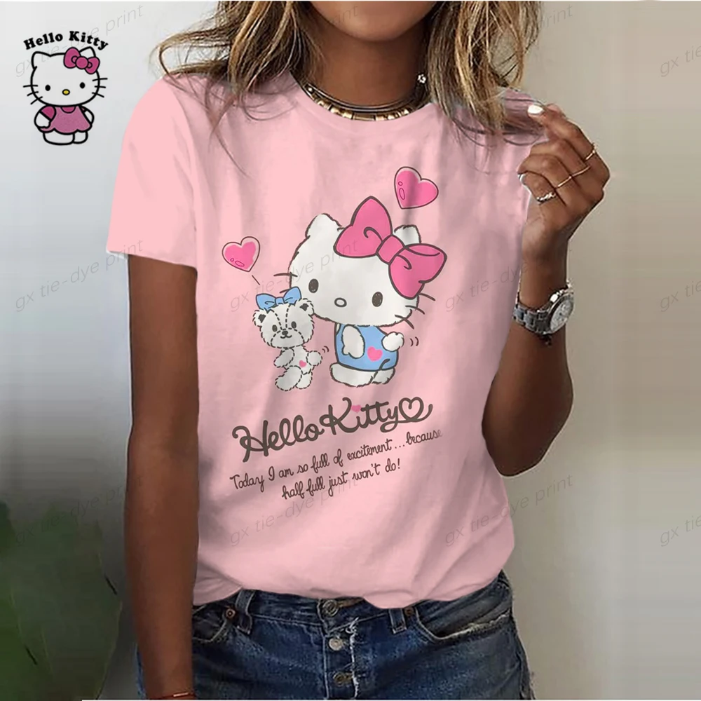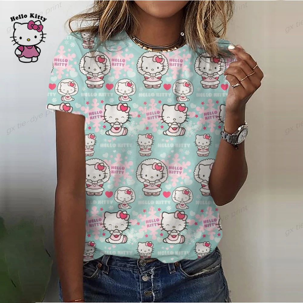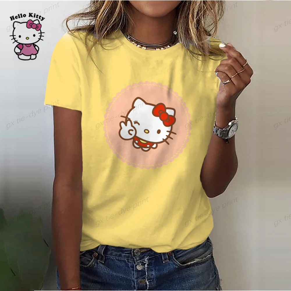 Sesy Tank Top O Neck Kint Crop Tops Women Summer HELLO KITTY Cartoon Fashion Casual Tube Female Short Sleeve Cropped T Shirt