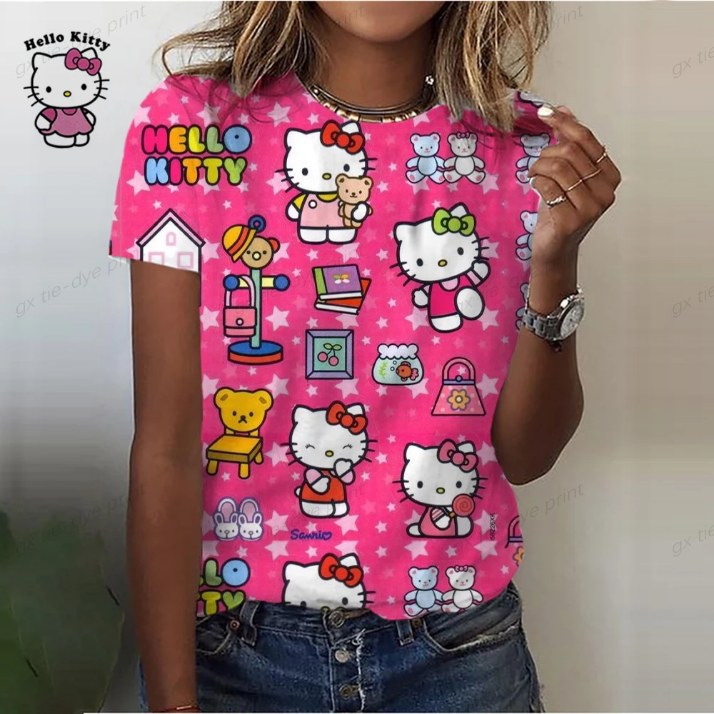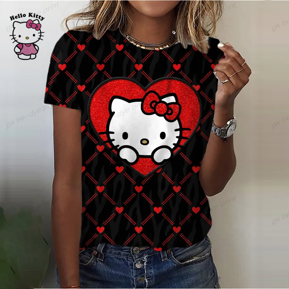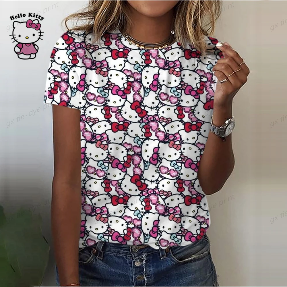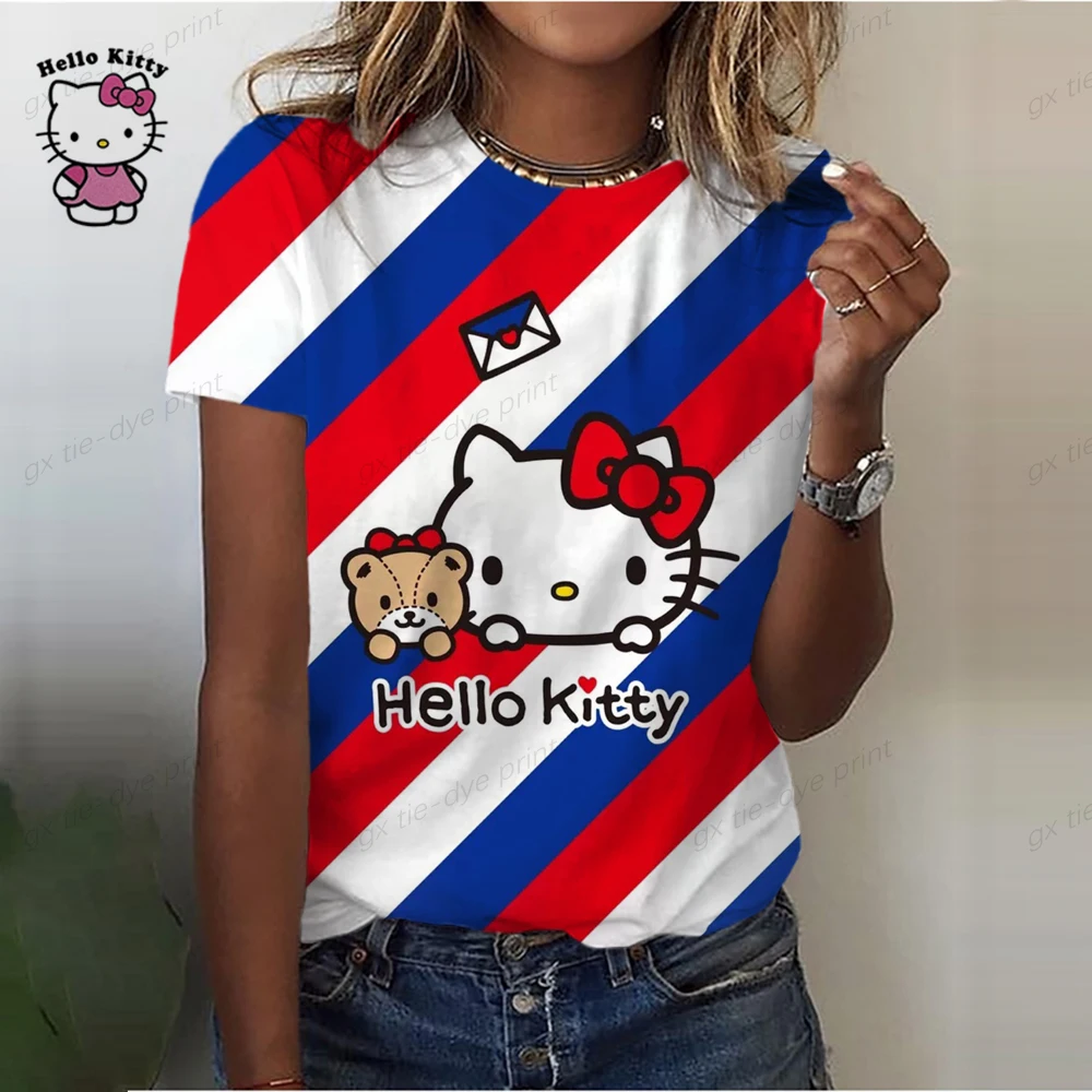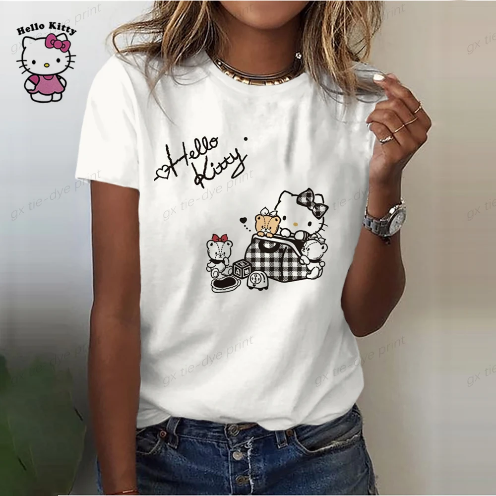 Tee Women T-shirt Summer Short Sleeve Print Clothes Graphic T Shirt Cartoon Hello Kitty Painting Clothing Fashion Female Top