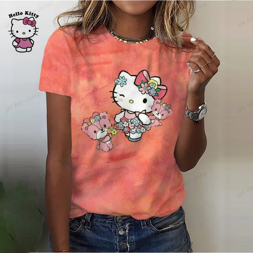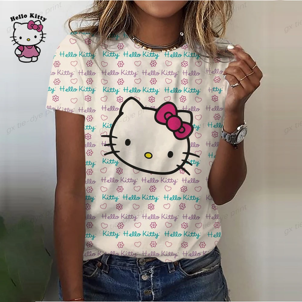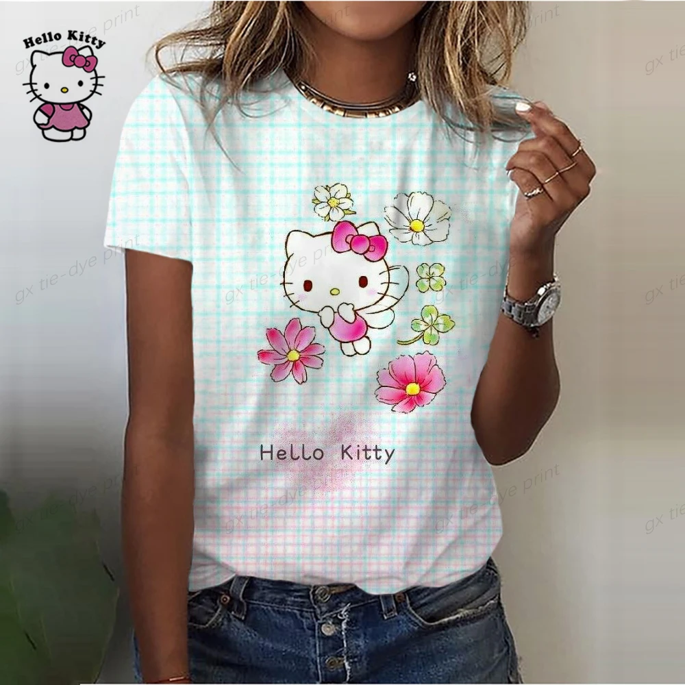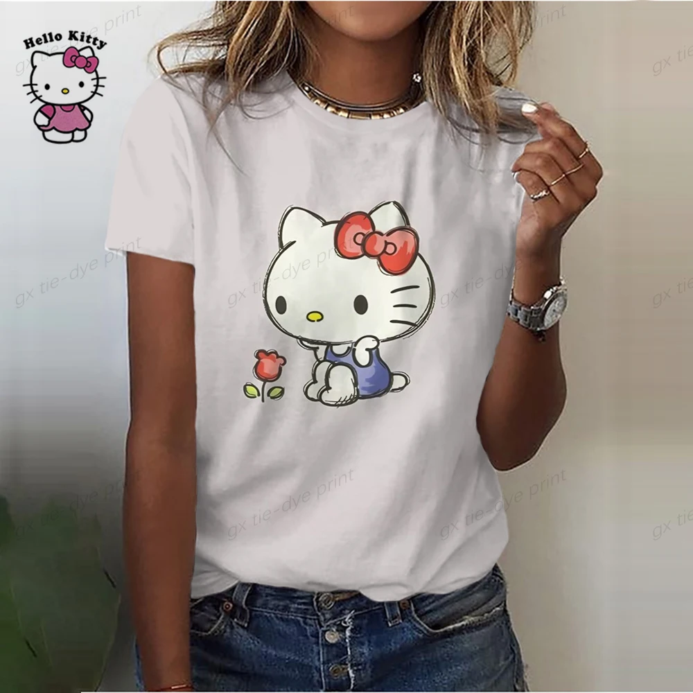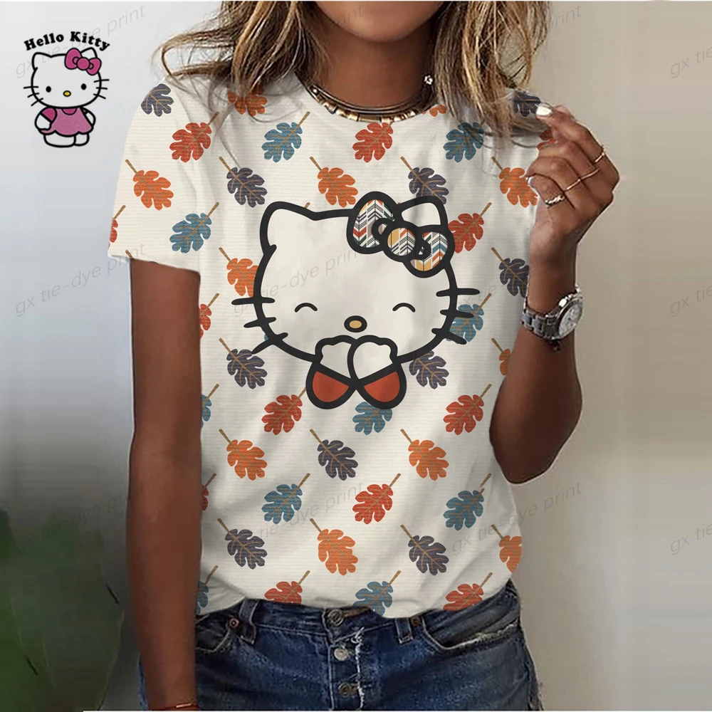 2023 Family Trip T Shirt Women Hello Kitty Print Cartoon Fashion Cartoon Casual Vacation Clothes Mother Kids T-shirts