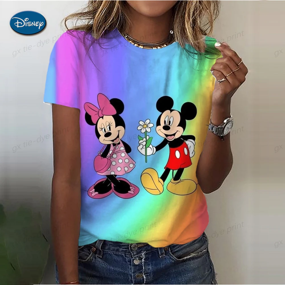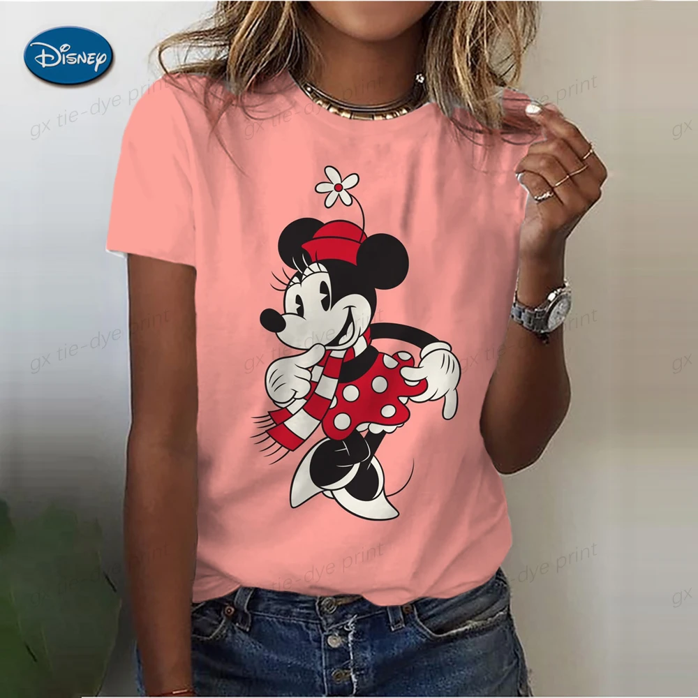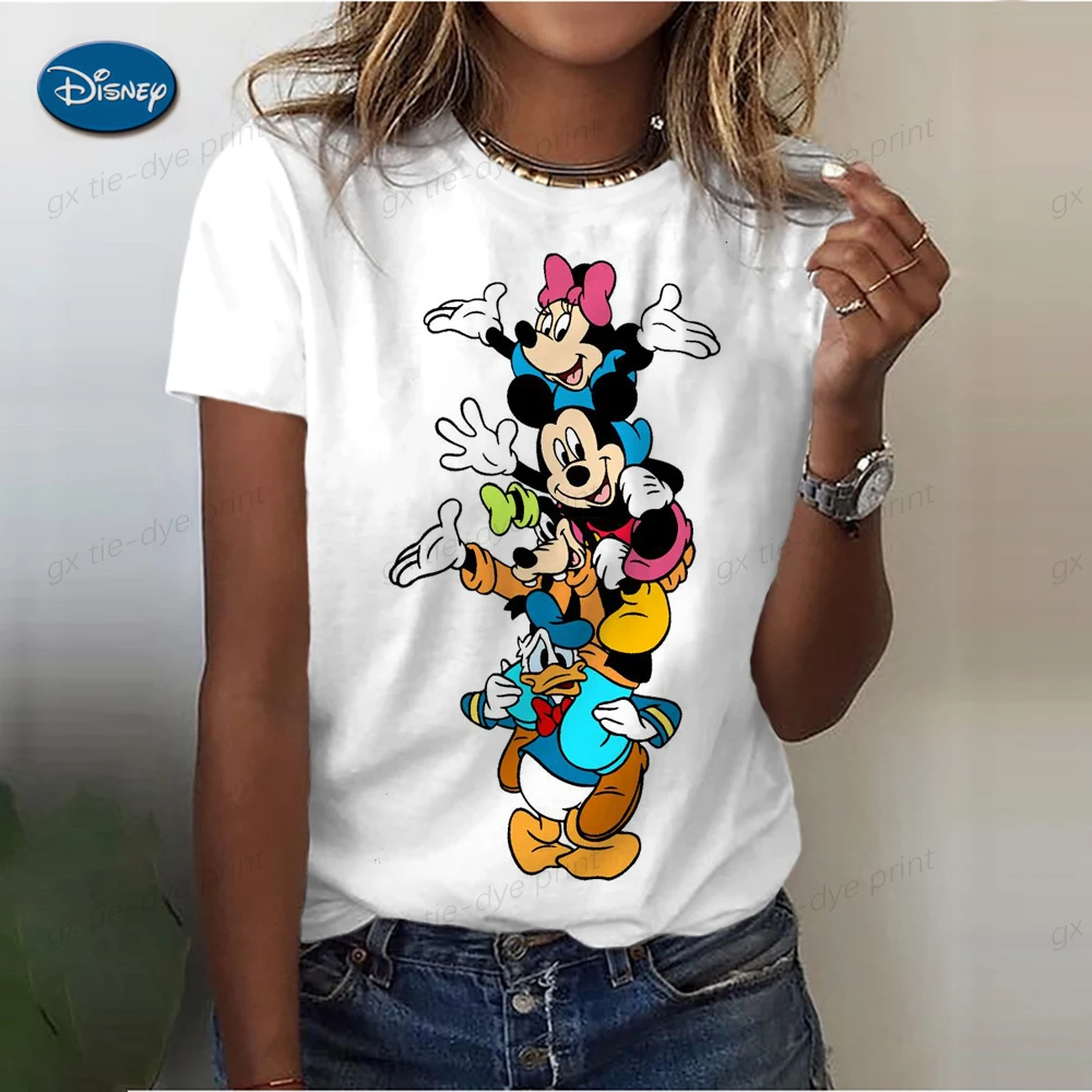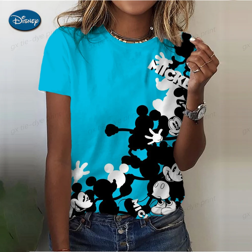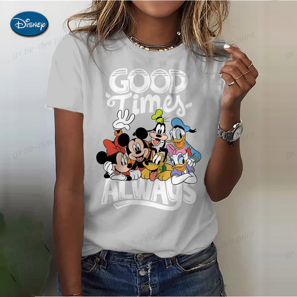 Summer Disney Mickey Mouse Retro Top Women's Loose Round Collar Casual Shirt Autumn Short Sleeve T-Shirt Cartoon Print