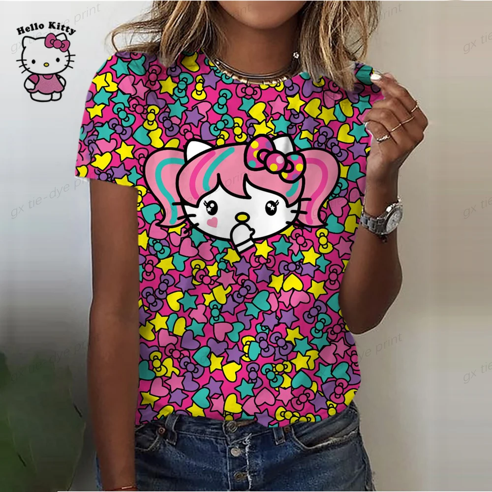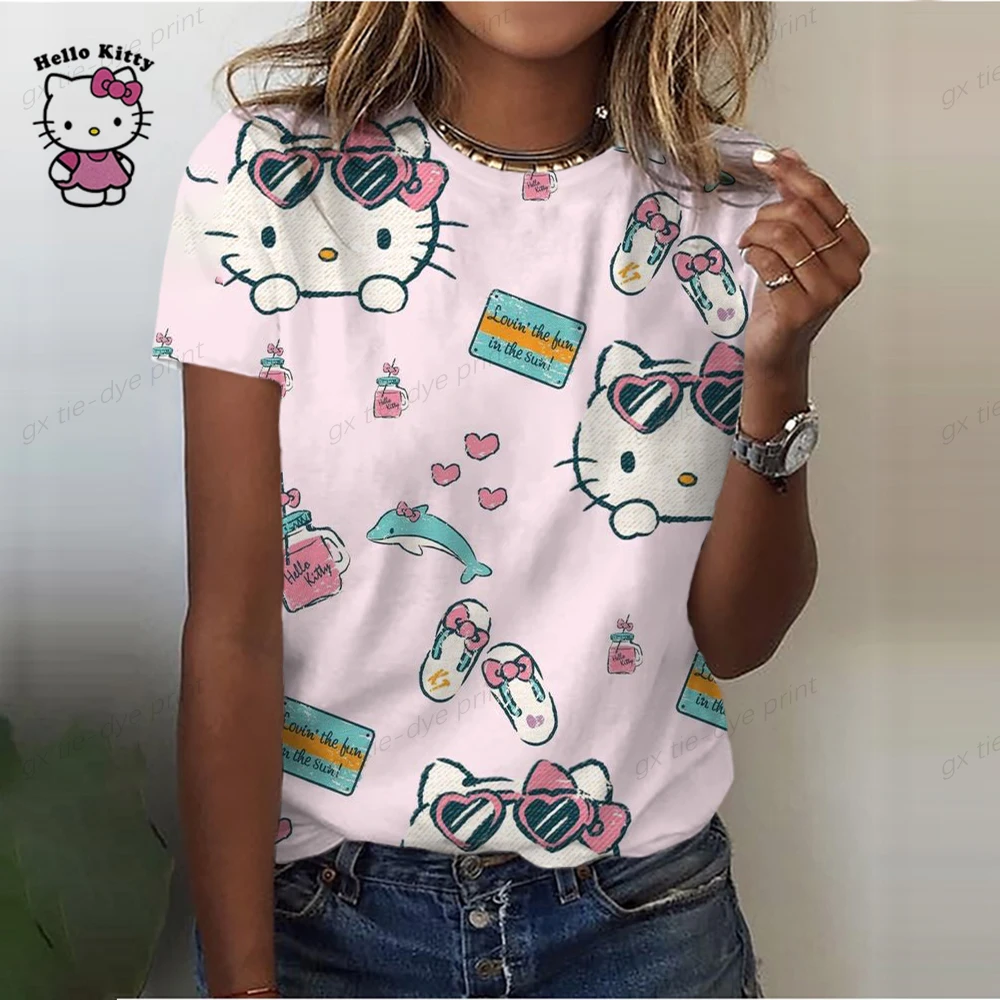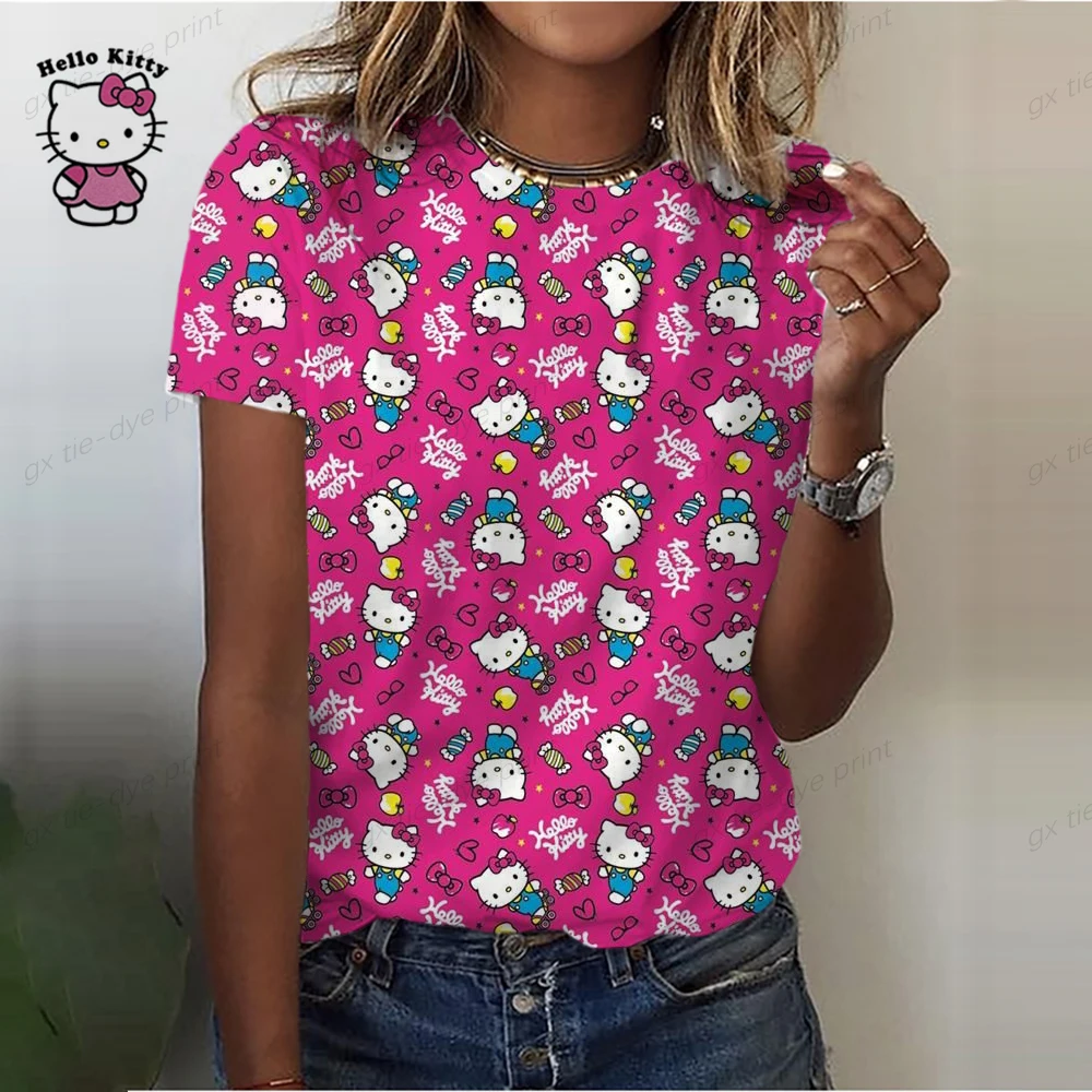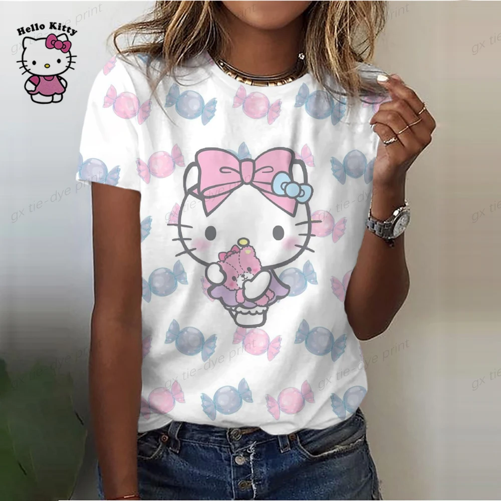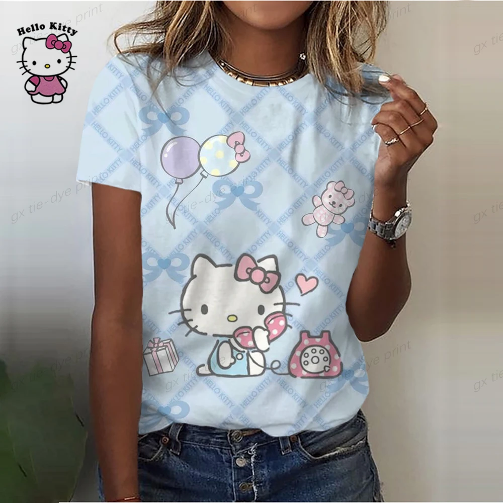 Fashion Women Tshirt Harajuku Kawaii T Shirt Women Hello Kitty Casual Punk Tshirt Funny Cartoon T-shirt Cute Anime Top Tee Girl