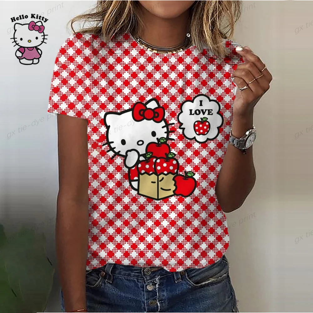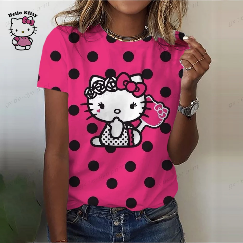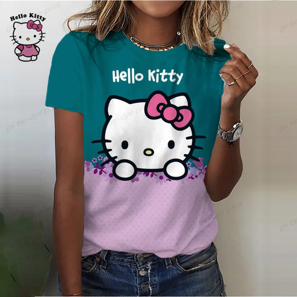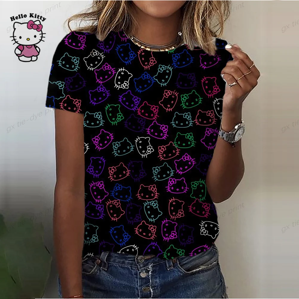 Ladies New Fashion Street Girl Short-sleeved Pullover Women's Summer Oversized T-shirt O-neck Simple Casual Hello Kitty T Shirt