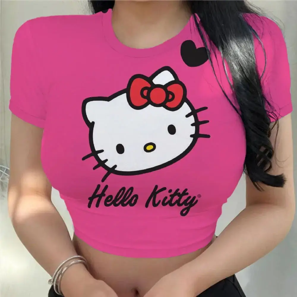 Sexy Kawaii Mickey Mouse Print Female Clothing Cartoon Y2k Party Summer Crop Top Slim Fit T Shirt Tight Women's T-shirt Fashion