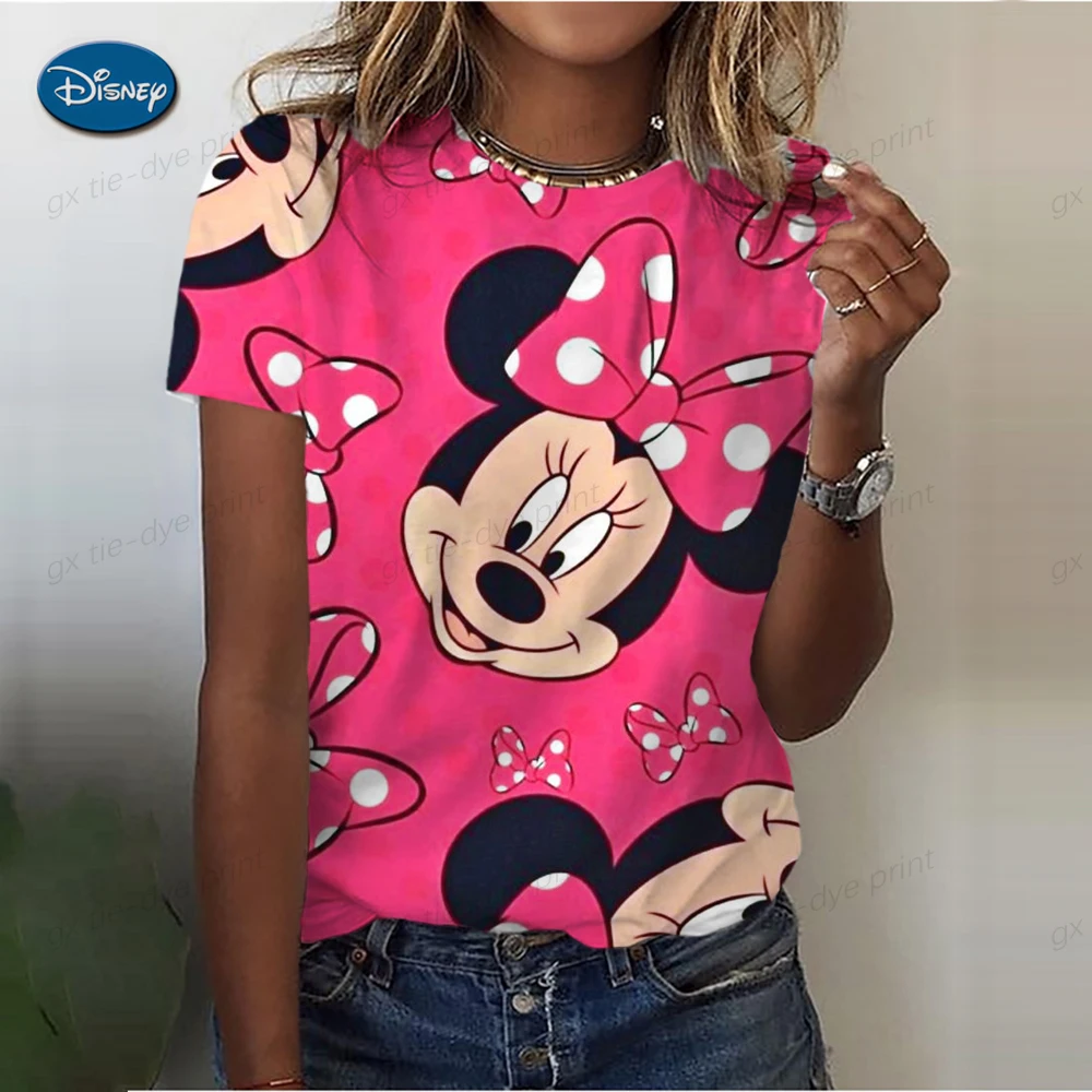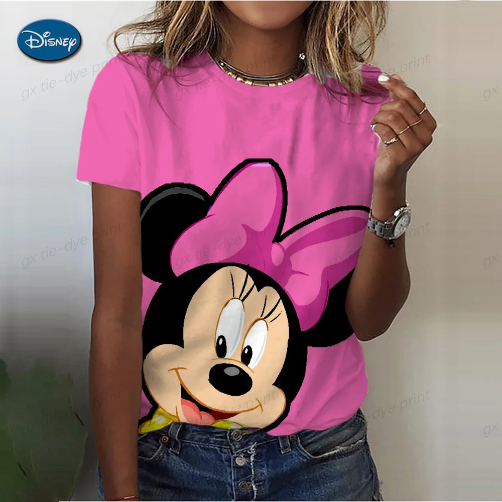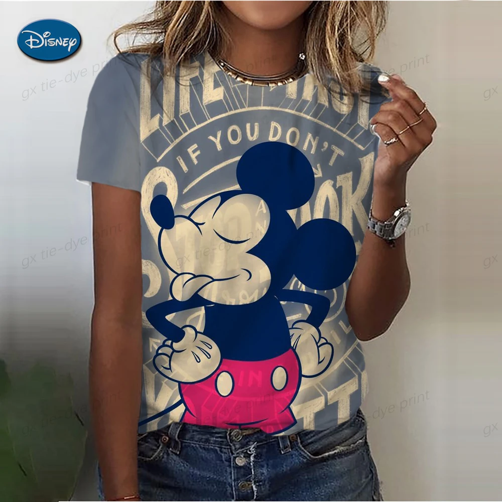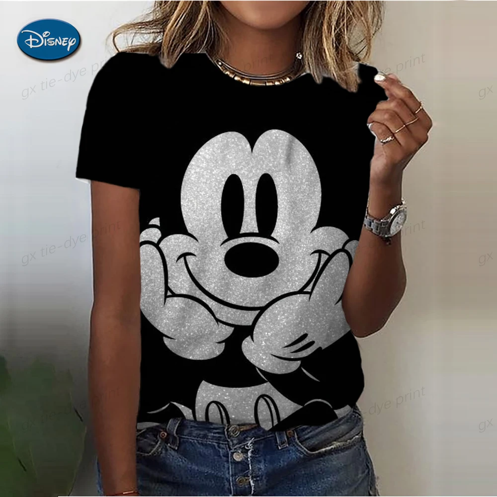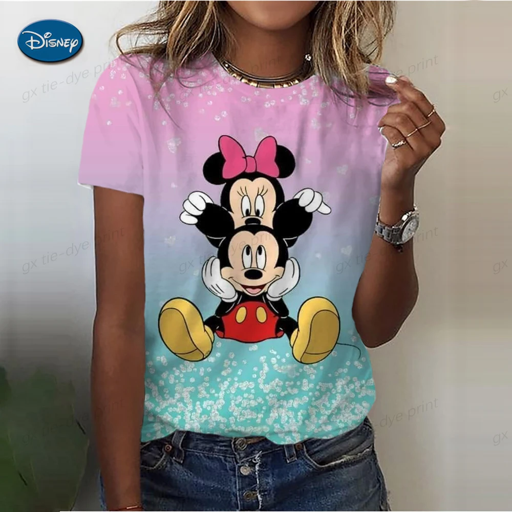 2024 Summer New Women's T-shirt Mickey Mouse Fashion 3D Printing Short Sleeve Casual Street Sports O-Neck Women's T-shirt