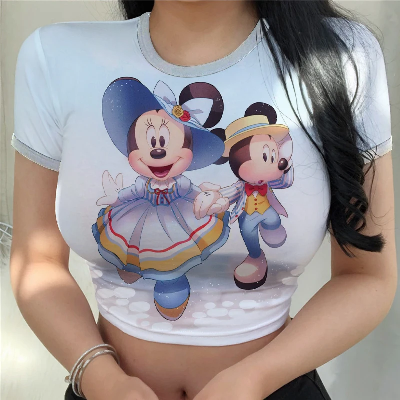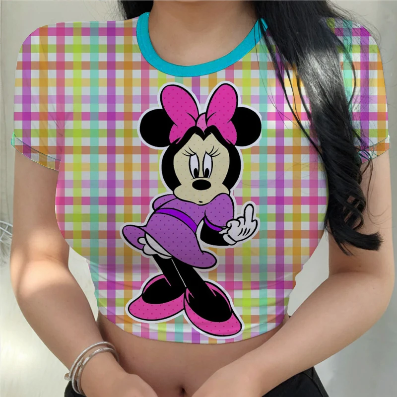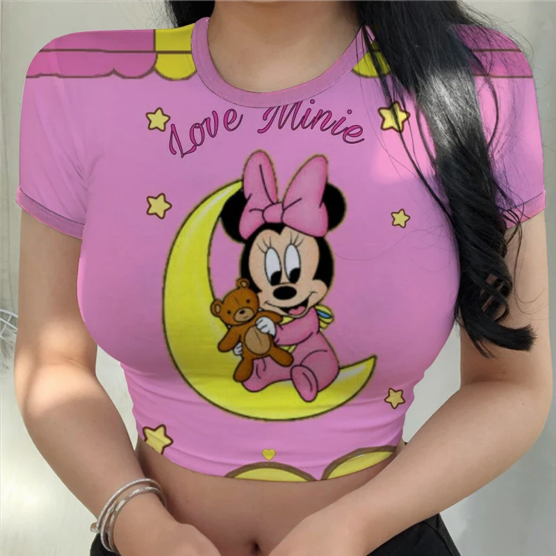 T-shirt Sexy Minnie Mouse T-shirts Disney Fashion Woman Blouses 2024 New Short Sleeve Crop Top Mickey Clothes Y2k Tops Lovely