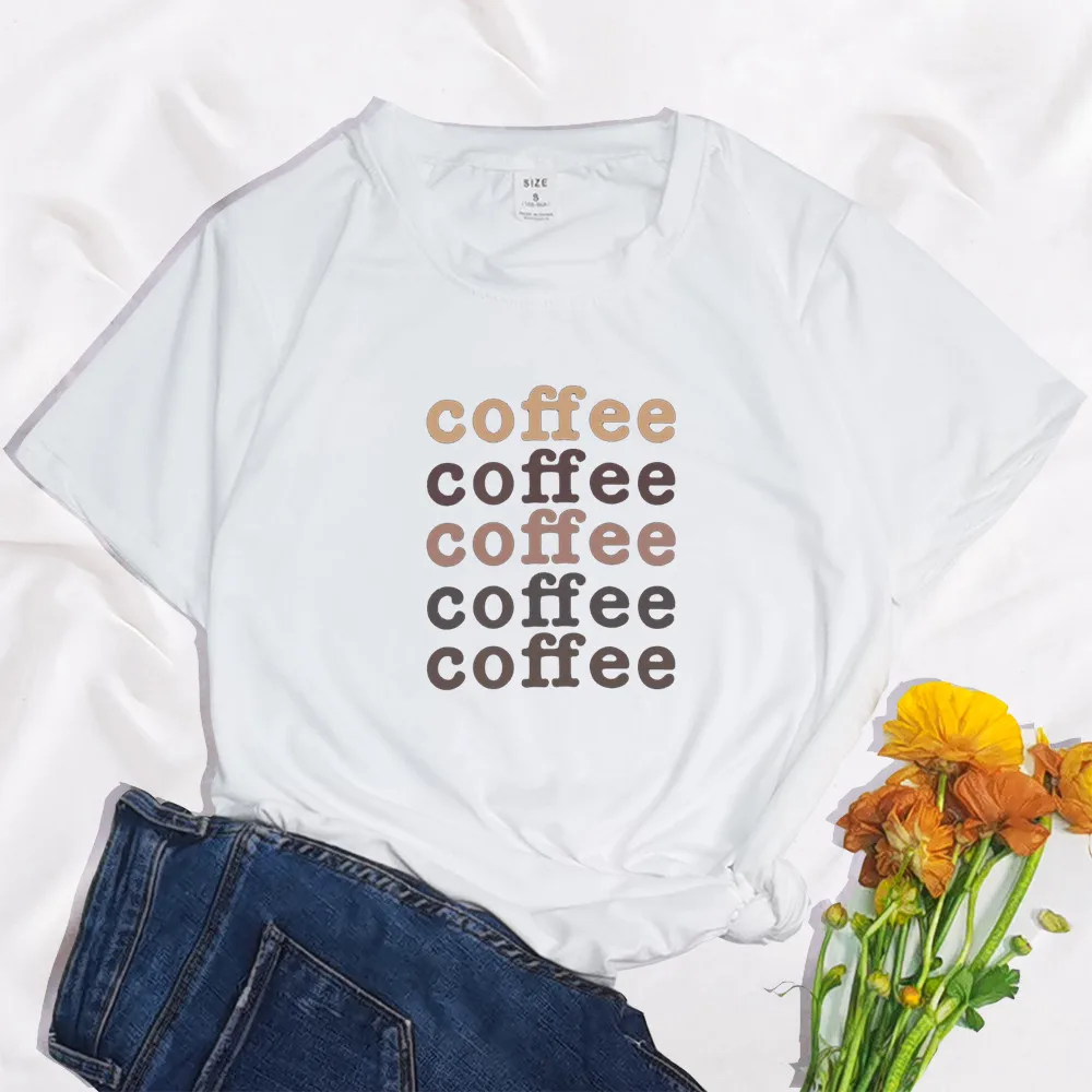 Coffee Letter Print 90s Funny Women T Shirt Summer Round Neck Y2K Harajuku Funny Vintage T-shirt Graphic Streetwear