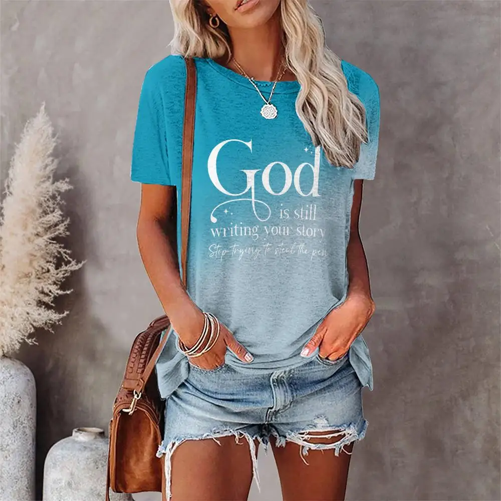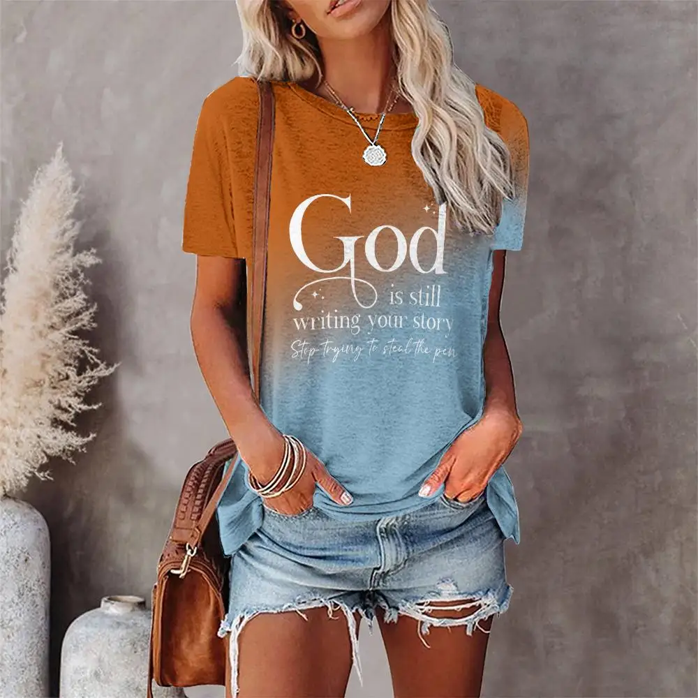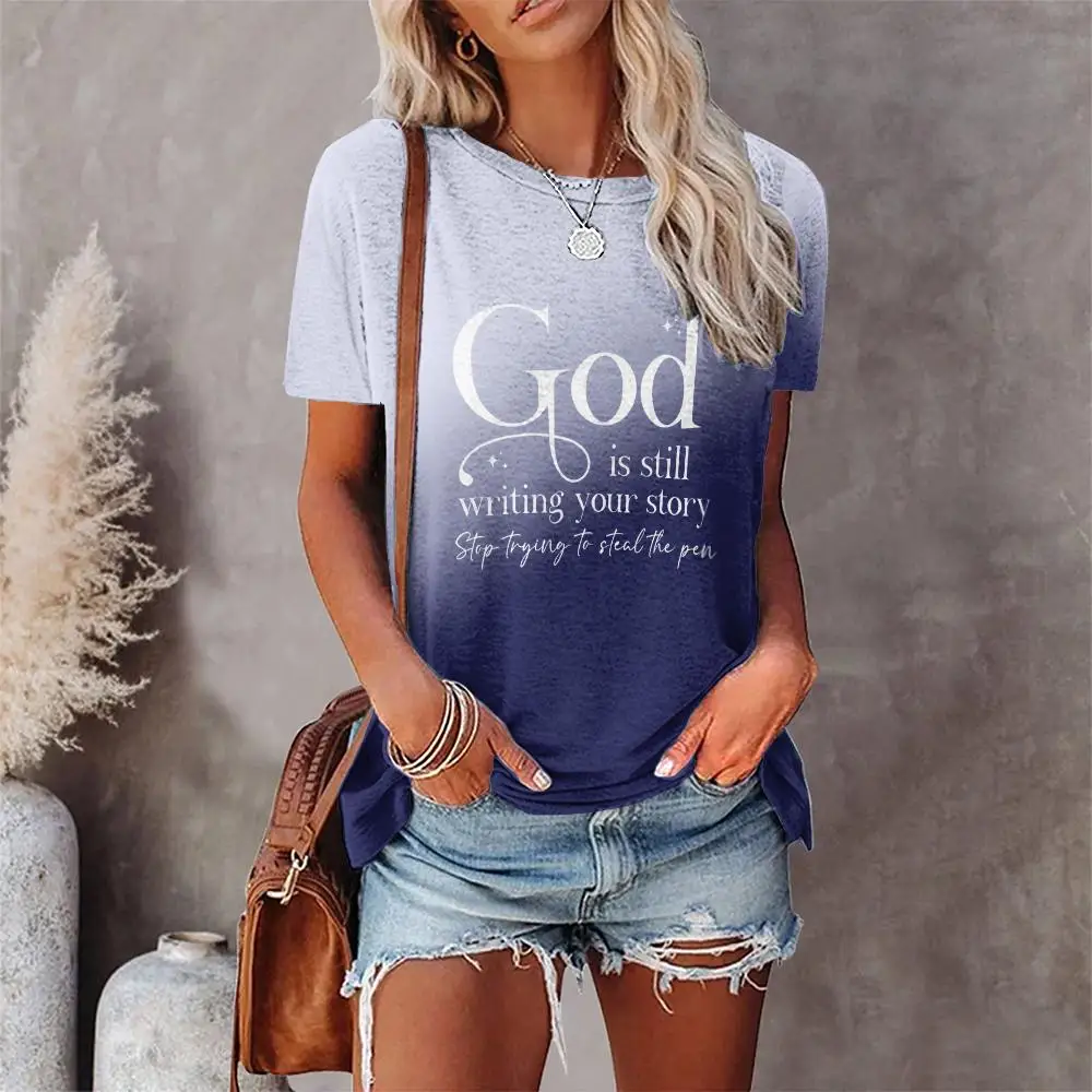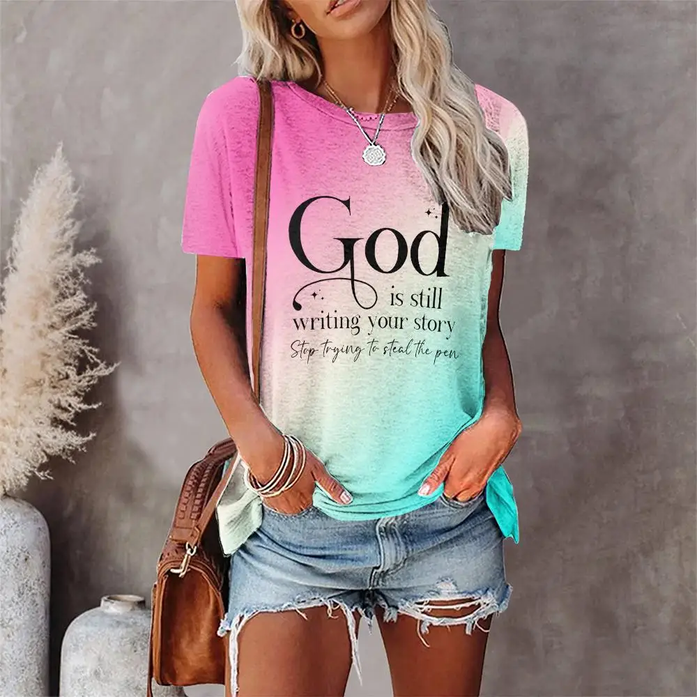 2024 New God With You Letter Print Women's T-shirt Plus Size Tee Crop Top Women's Clothing Fashion Short Sleeve Shirt Summer