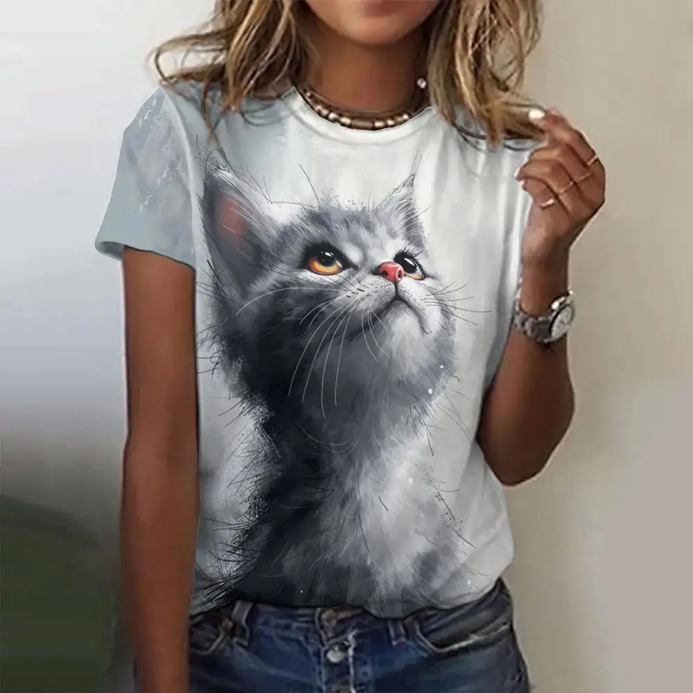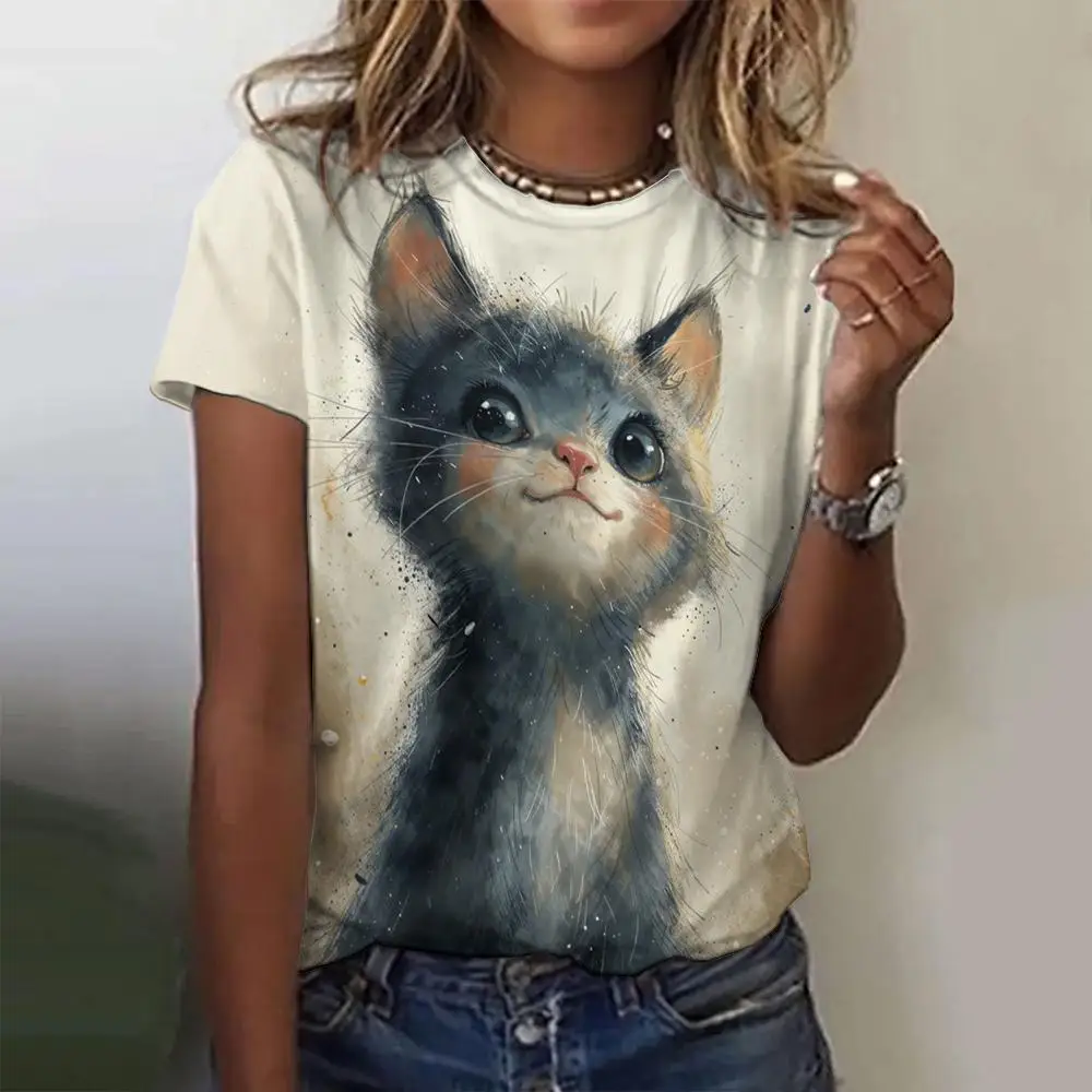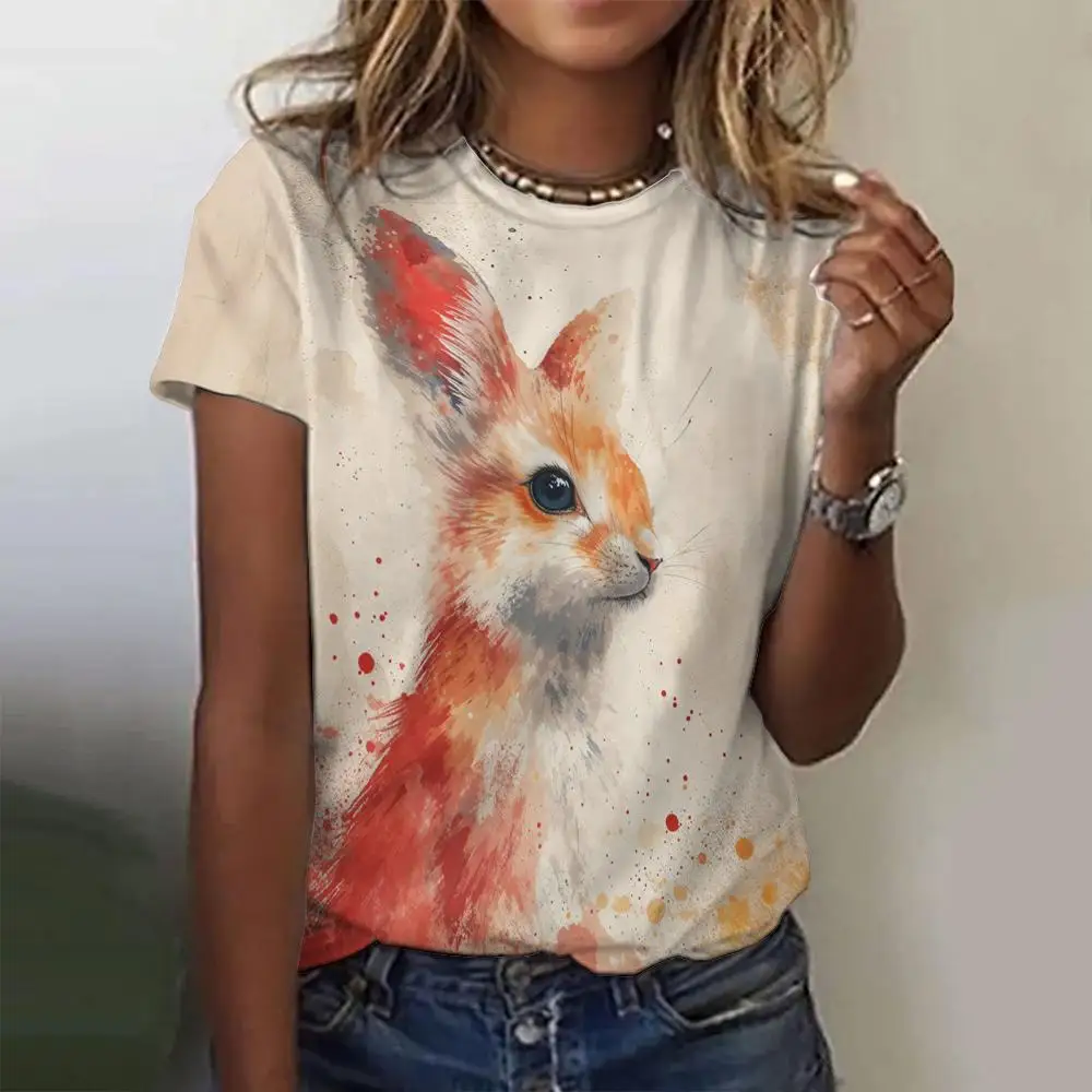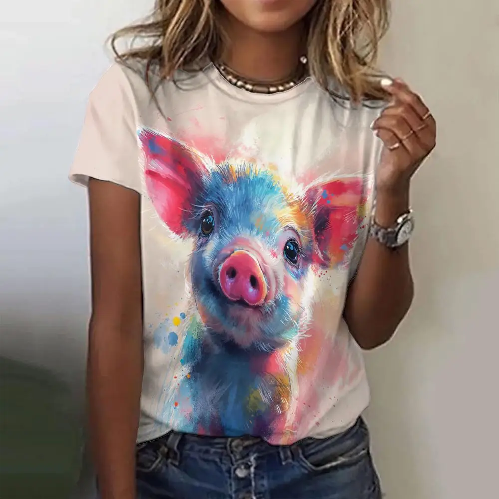 New Vintage Women's T-shirt Cartoo Animal Print Plus Size Women's Trending Clothes Fashion Short Sleeve Shirt Crew Tee Summer
