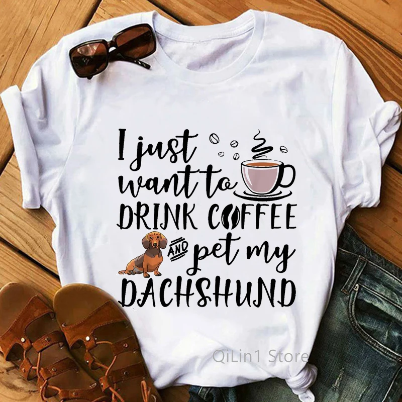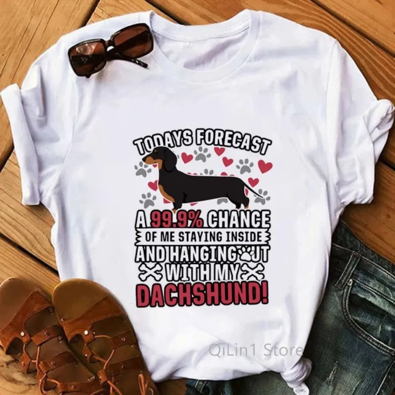 I Love My Dachshund I Love Dachshunds Cute Dog Cartoon Print White Loose T-shirt Women Fashion Oversized T Shirt