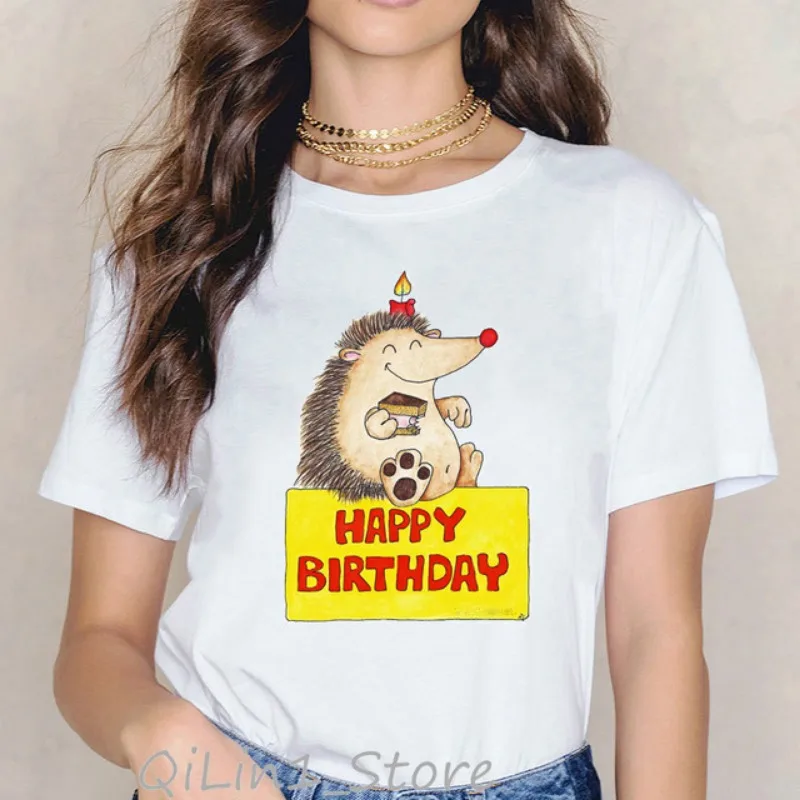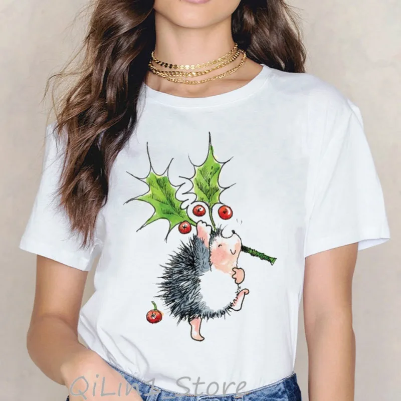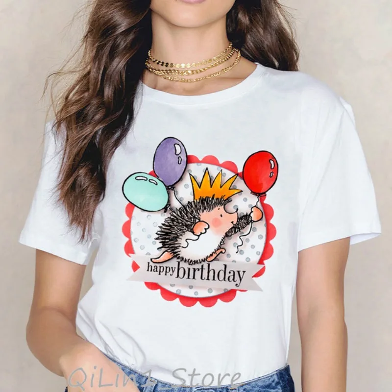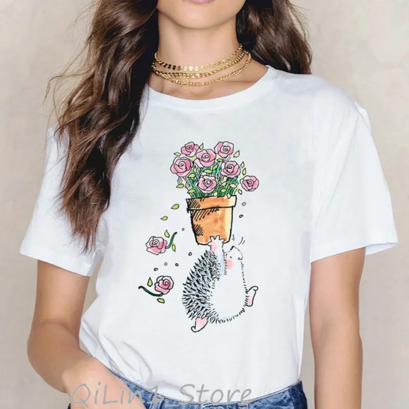 Women's Short Sleeve T-shirt Cartoon Cute Little Hedgehog Print T-shirt Aesthetic Clothes Graphic T Shirts Harajuku