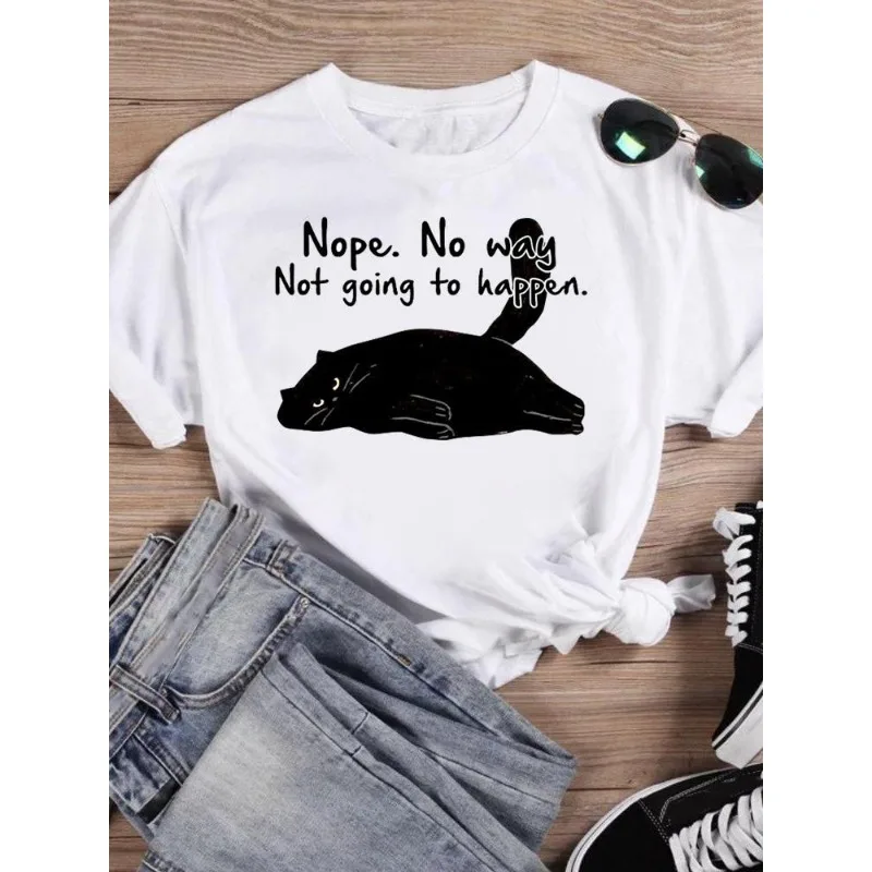 Women's Short Sleeve T-shirt Fashion Cat Letter Print Instagram Base Shirt Harajuku Aesthetic Clothes Women Clothing Graphic
