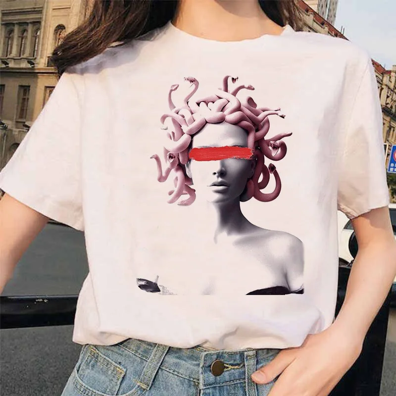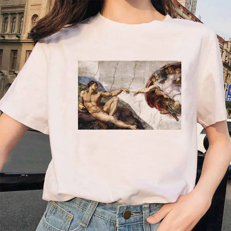 New European and American Michelangelo Painting Pattern Printed Women's Round Neck Short-sleeved Casual T-shirt Tops Pro Choice