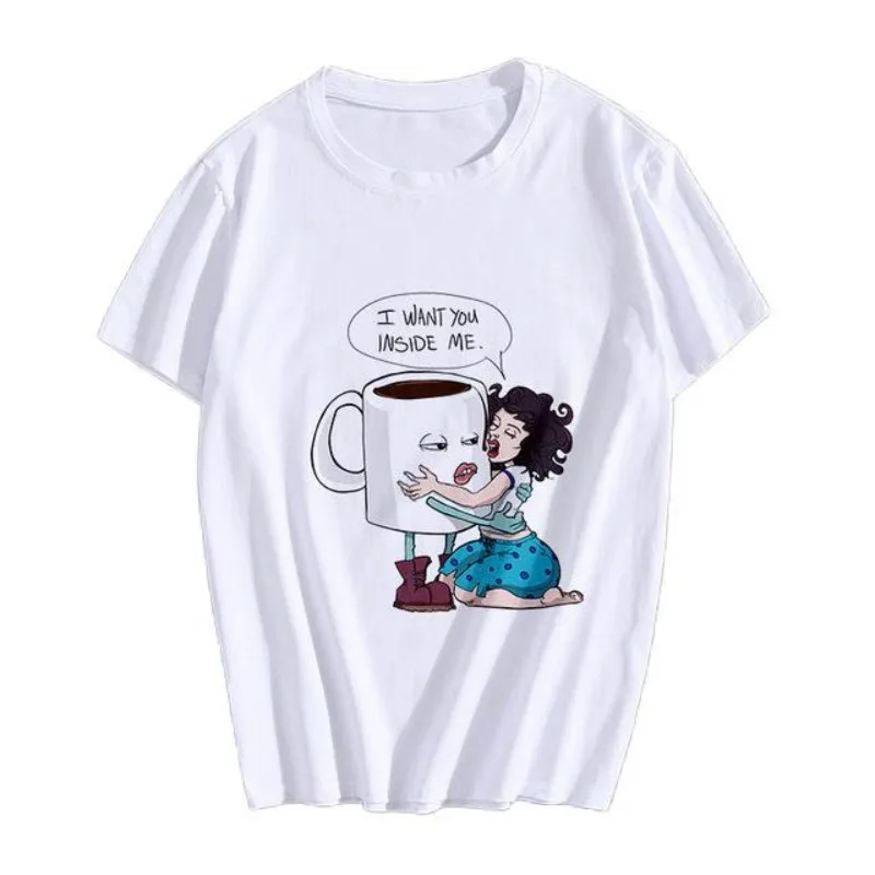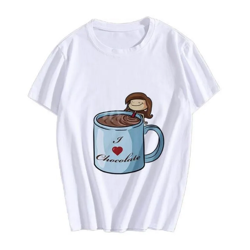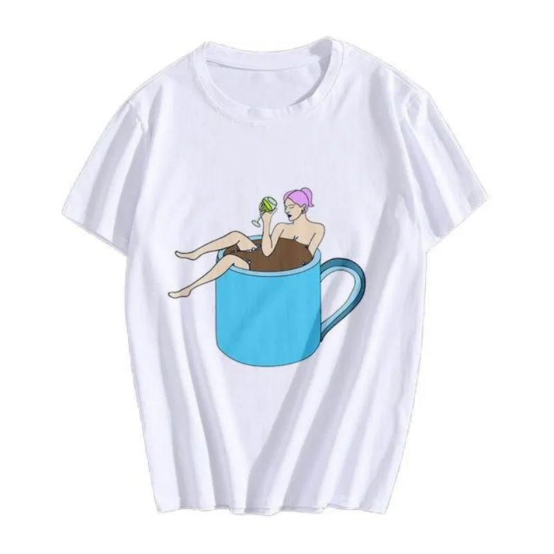 Spring Women's Short Sleeve T-shirt New Cartoon Hand Painted Coffee Cup Letter Printing Harajuku Women Clothes Aesthetic
