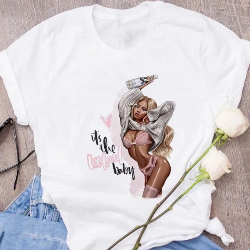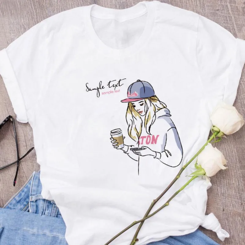 Fashion Wholesale Summer City Girl White Women's Casual Printed Vintage T-shirt Round Neck T Shirt Women Clothing Y2k Tops