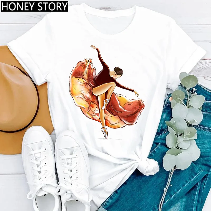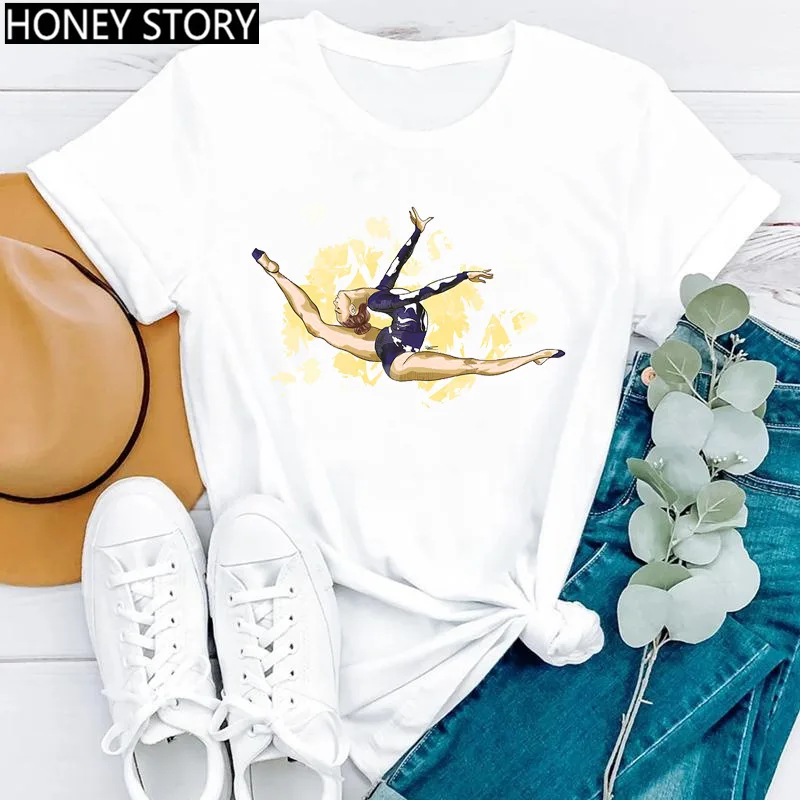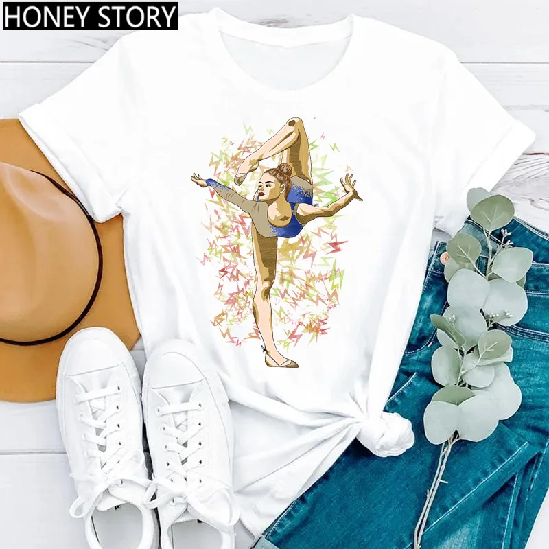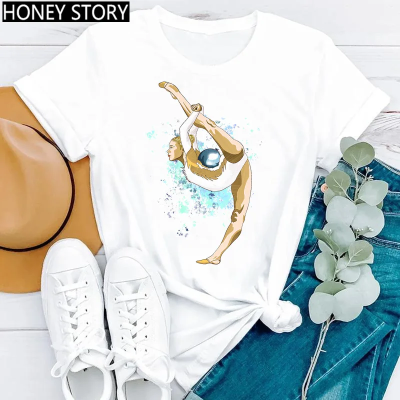 Creative Fashion Watercolor Dance Gymnastics Print Female Round Neck Casual T-shirt Student Short Sleeve Dance Dress T-shirts