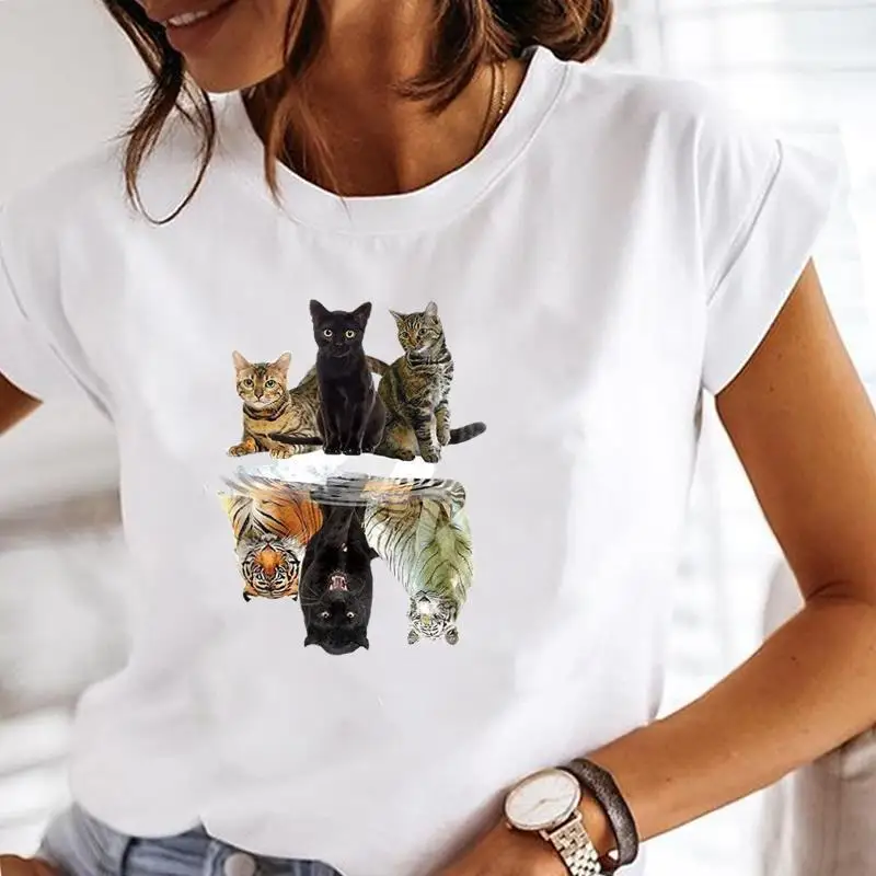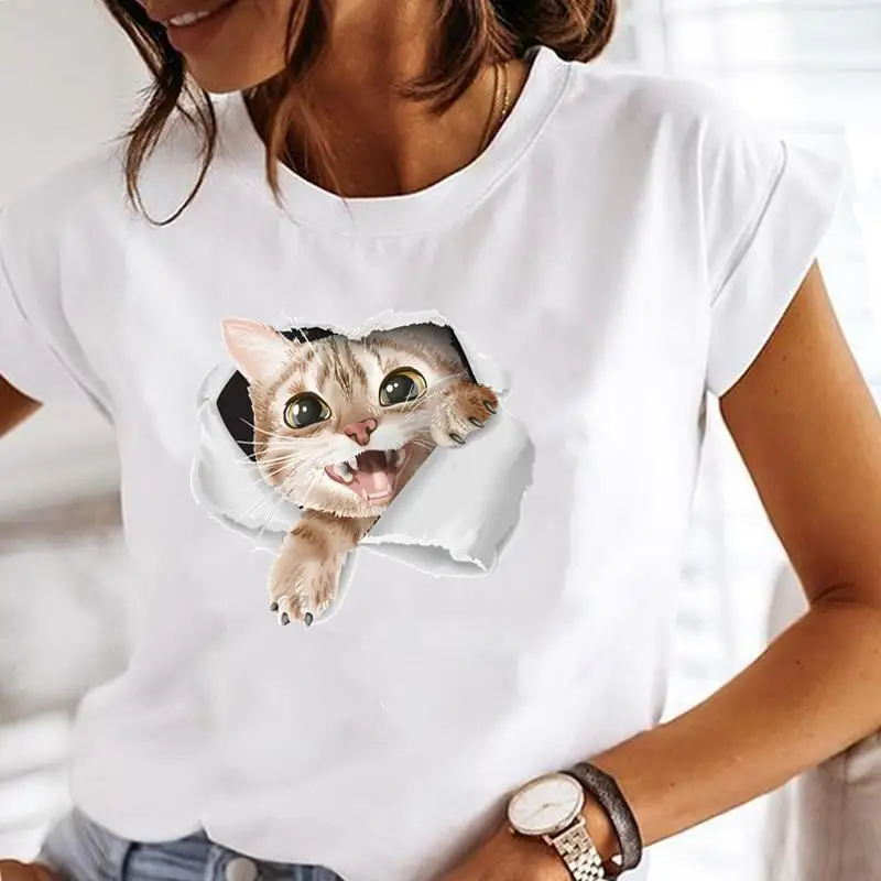 Cat 3D Clothing Women Print European and American Short-sleeved T-shirt Graphic T Shirts Aesthetic Clothes Women Clothes