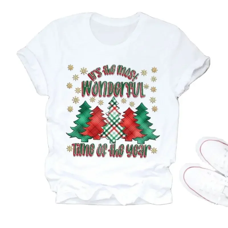Four Seasons Girl Tshirt Christmas Element Printed Short Sleeve Large Size Shirt Fashion Women's Crewneck T-shirts Pro Choice