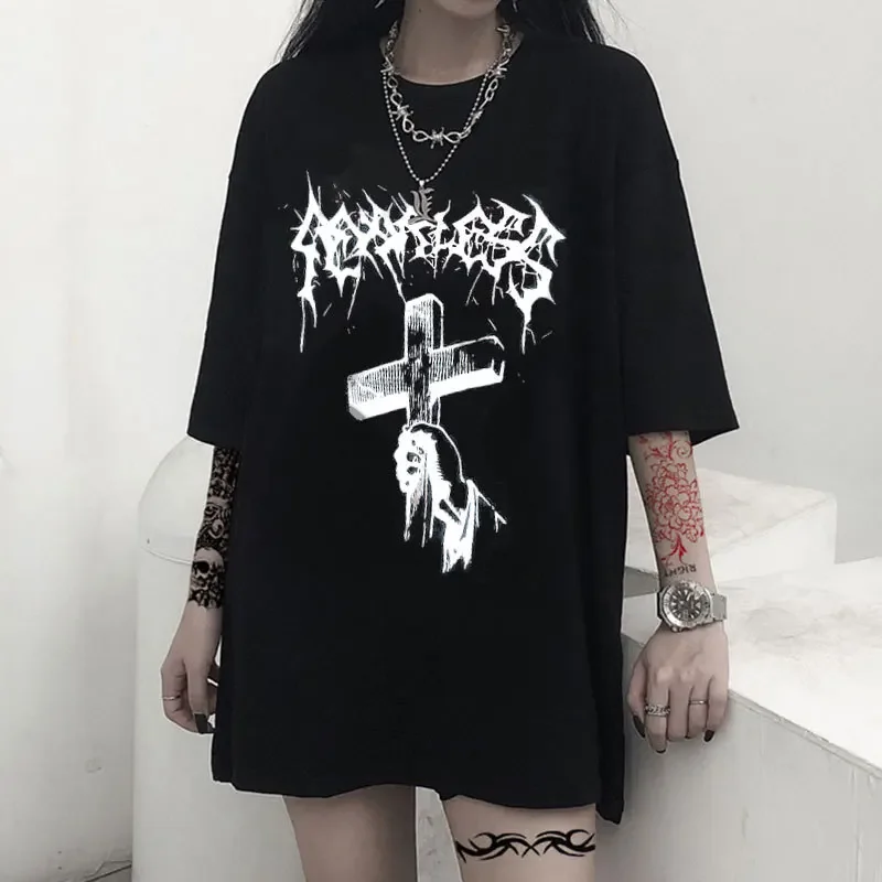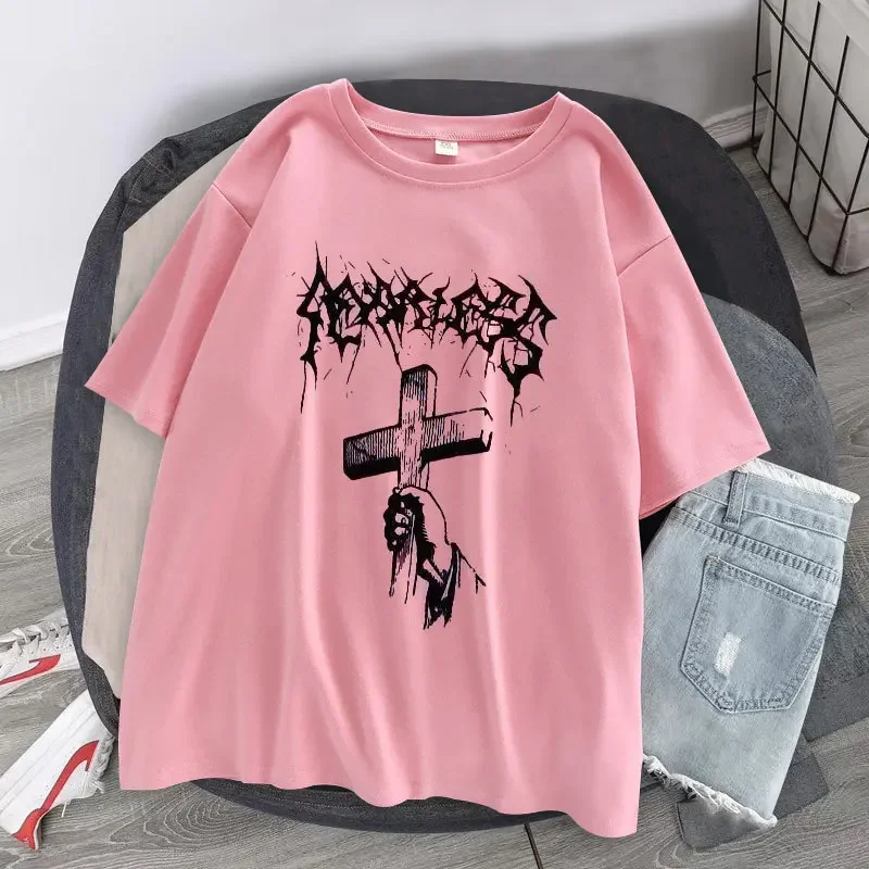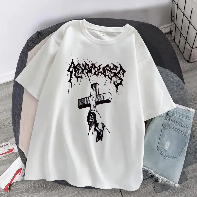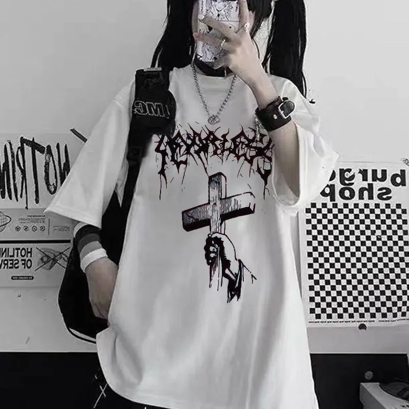 Hand-painted Fashion Short Sleeve T-shirt Women Comfortable Loose Korean Version of Instagram Trendy Goth Style Top Cool Tops