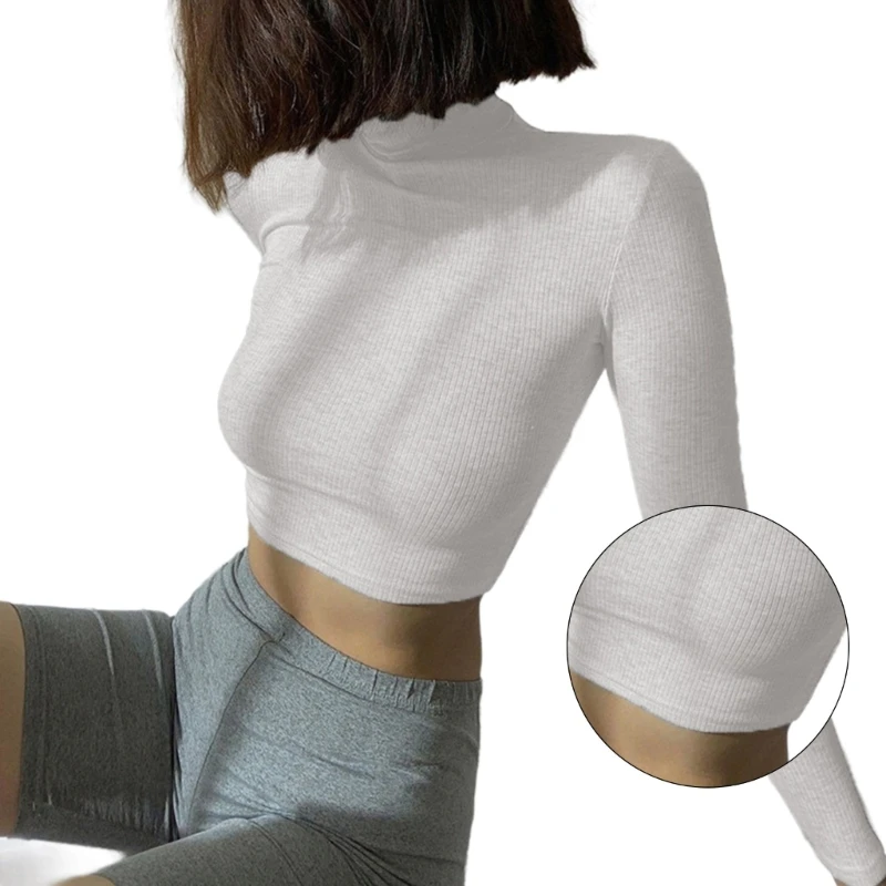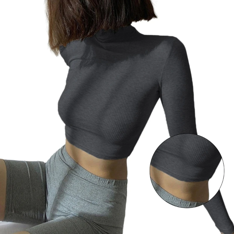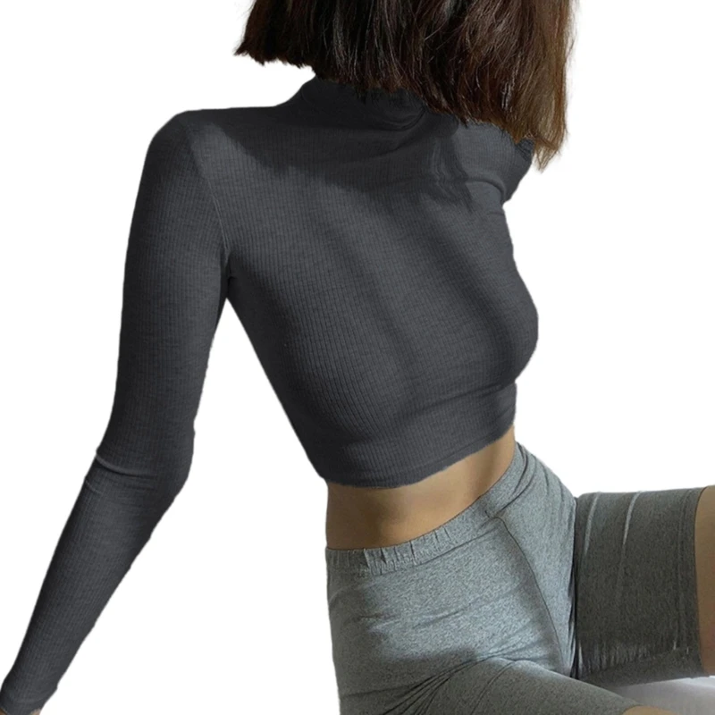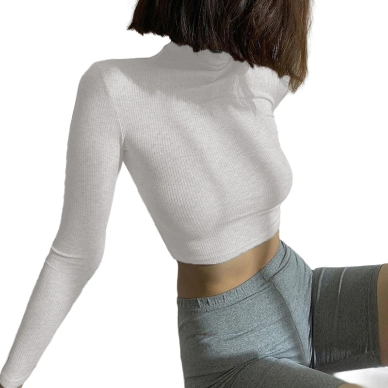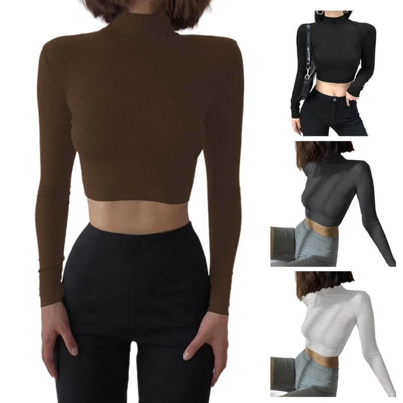 Ribbed Knit Half Turtleneck Sweater for Women Solid Color Pullover Crop Top Dropship