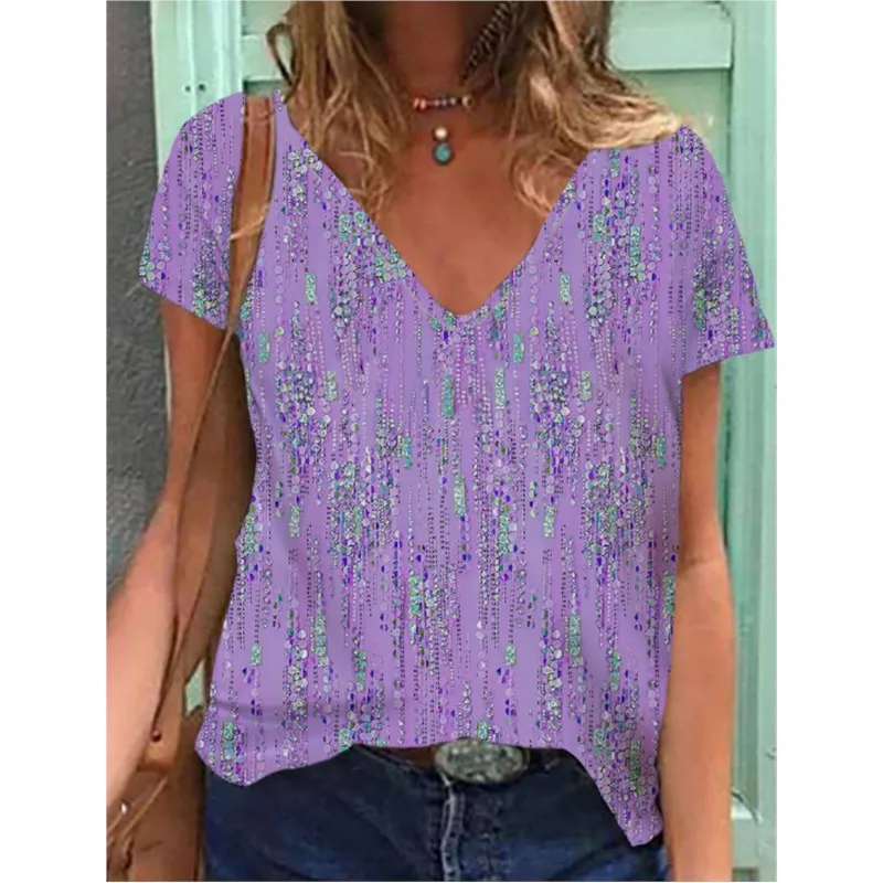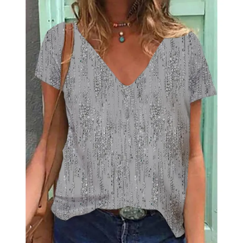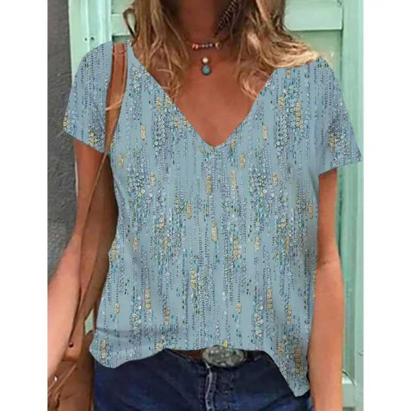 Casual Loose Pullover Blusas mujer Y2k Tees roupas feminina Summer Women's Short Sleeved V-neck Printed 3D Tops T-shirt 2024