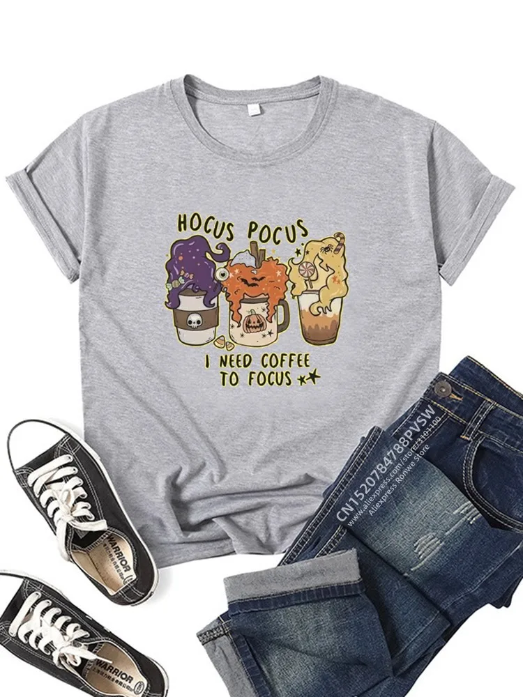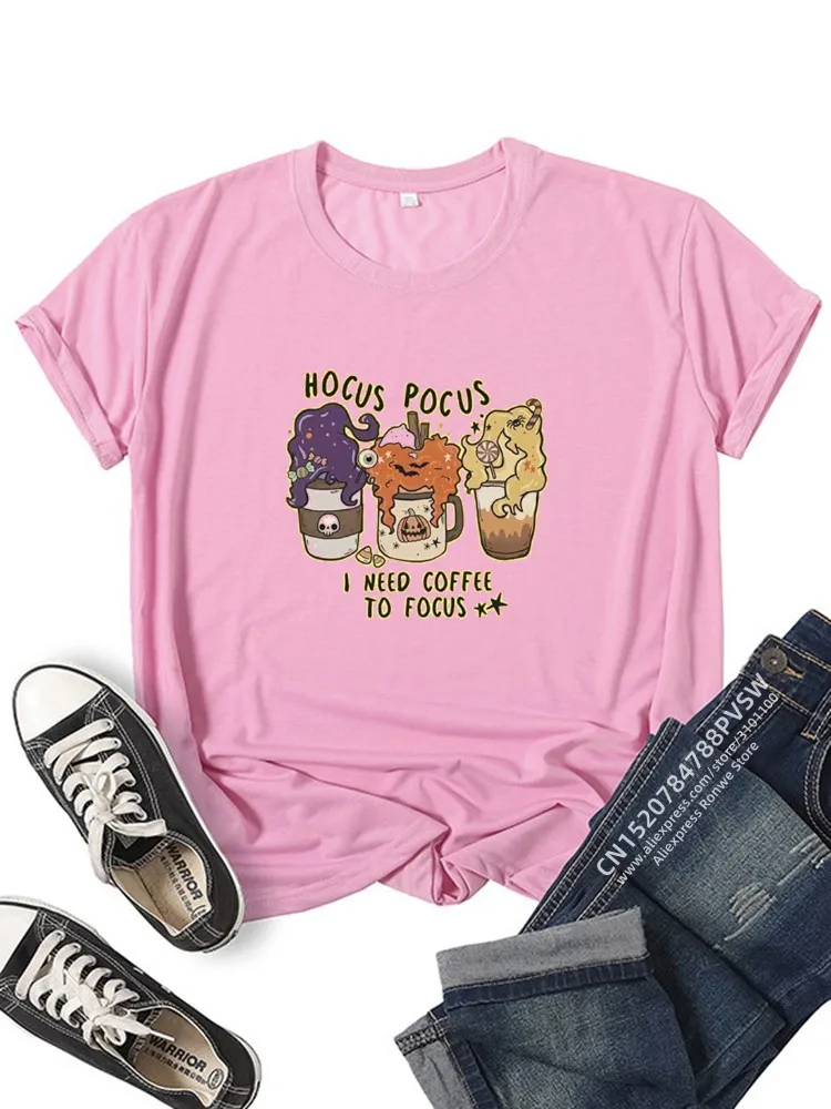 Halloween I Need Coffee Graphic Women Print T-shirts Girl Summer Harajuku Tops Y2k Tops Tee Trendy Casual 90s Vintage Clothes