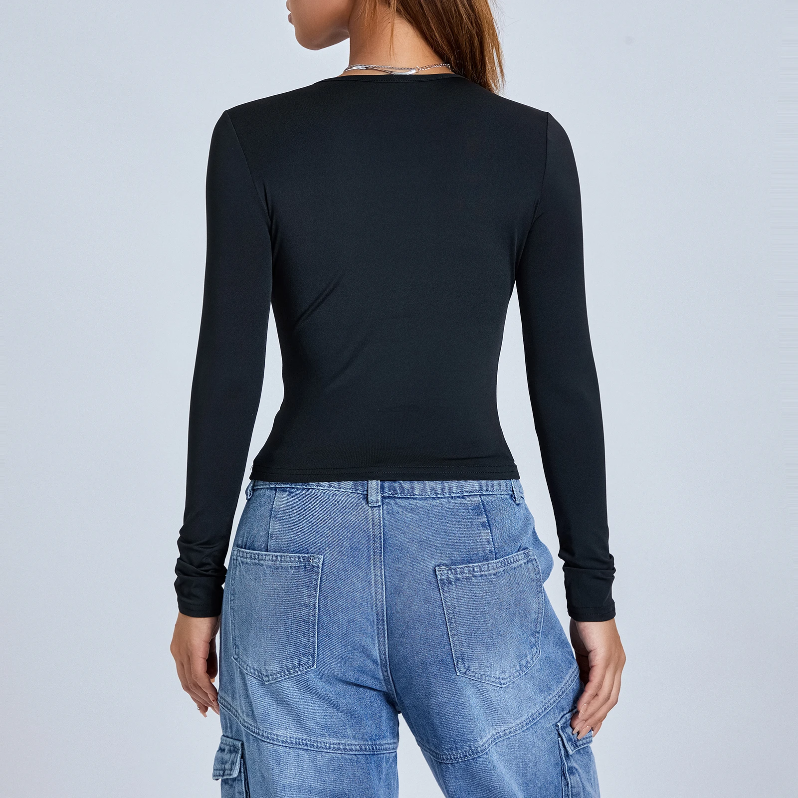 Women Spring Autumn Crewneck Skinny Long Sleeve Basic Slim Crop T Shirts Y2K Pullovers Tight Tee Tops Bodycon Shirts Streetwear