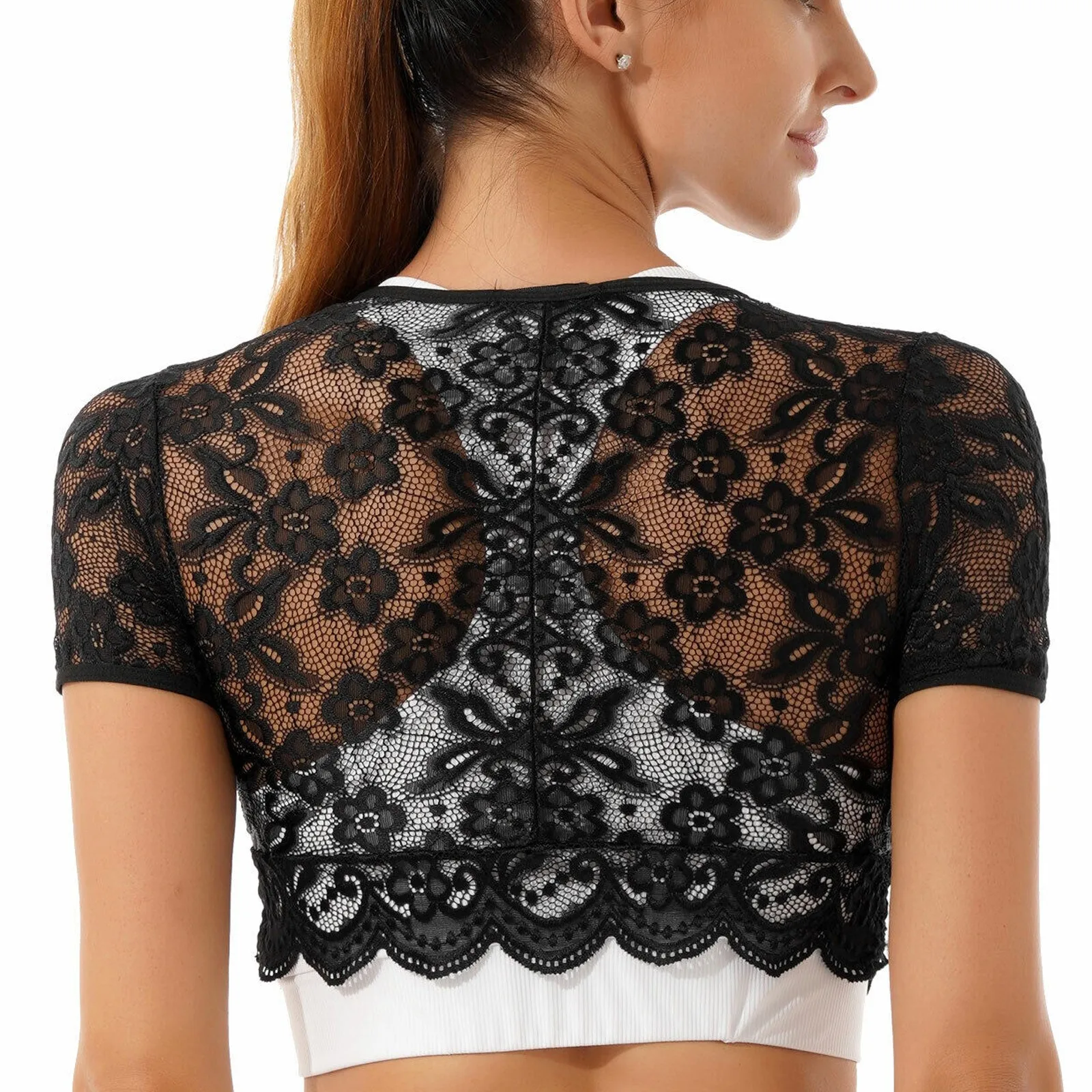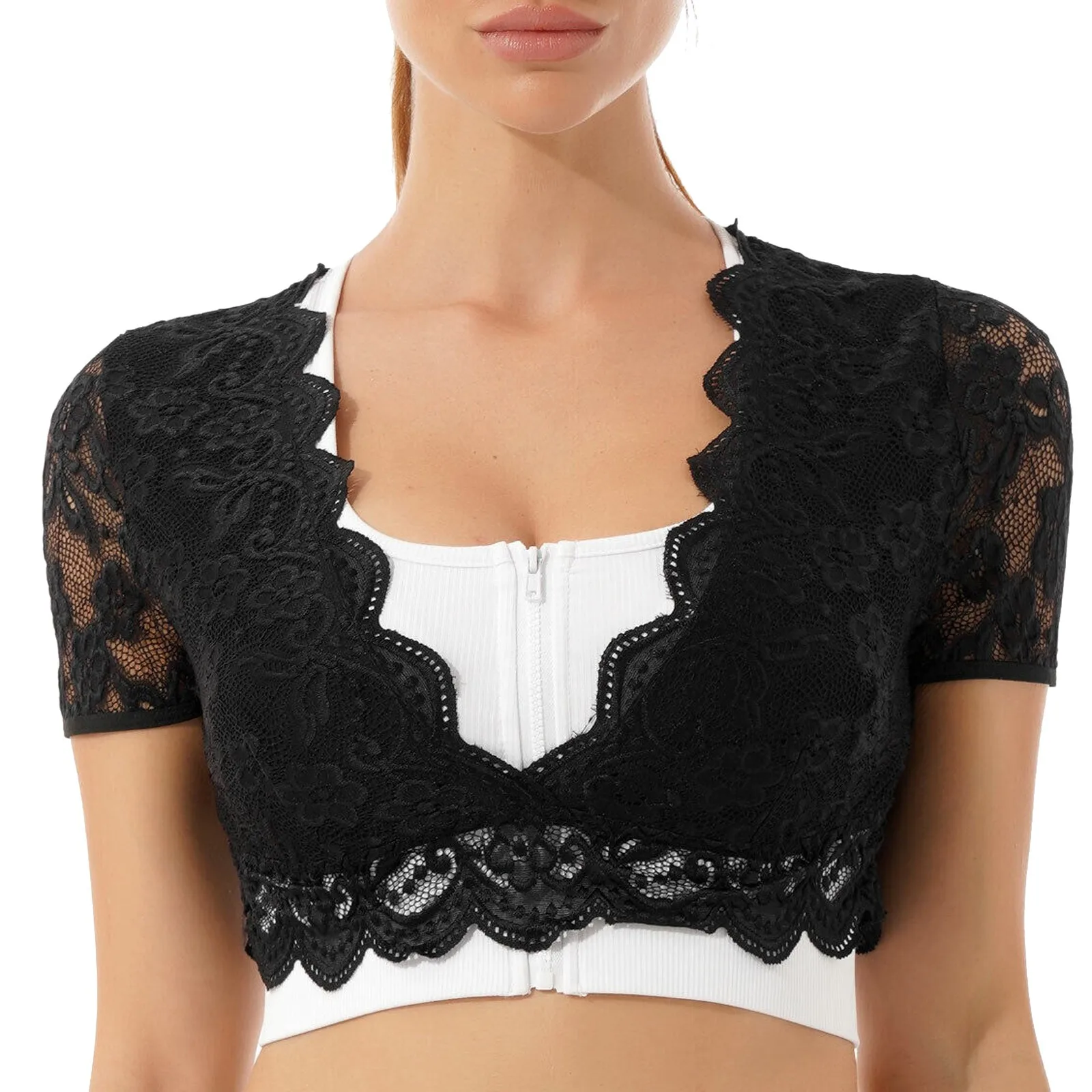 Oktoberfest Costume Women‘S Lace V-Neck Dirndl Blouses Women Black Vintage Sexy Floral Crop Top Elegant Short Sleeve T-Shirt