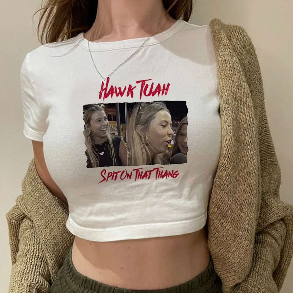 Hawk Tuah graphic cyber y2k crop top Woman 2000s graphic cute trashy clothing