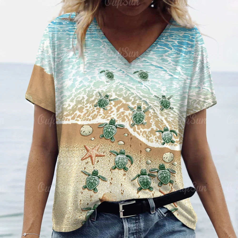 2024 Top Women Sea Animals Printed T-Shirt For Women Oversized T-Shirts Women's Trending Clothing Summer Cheap Beach T-shirt