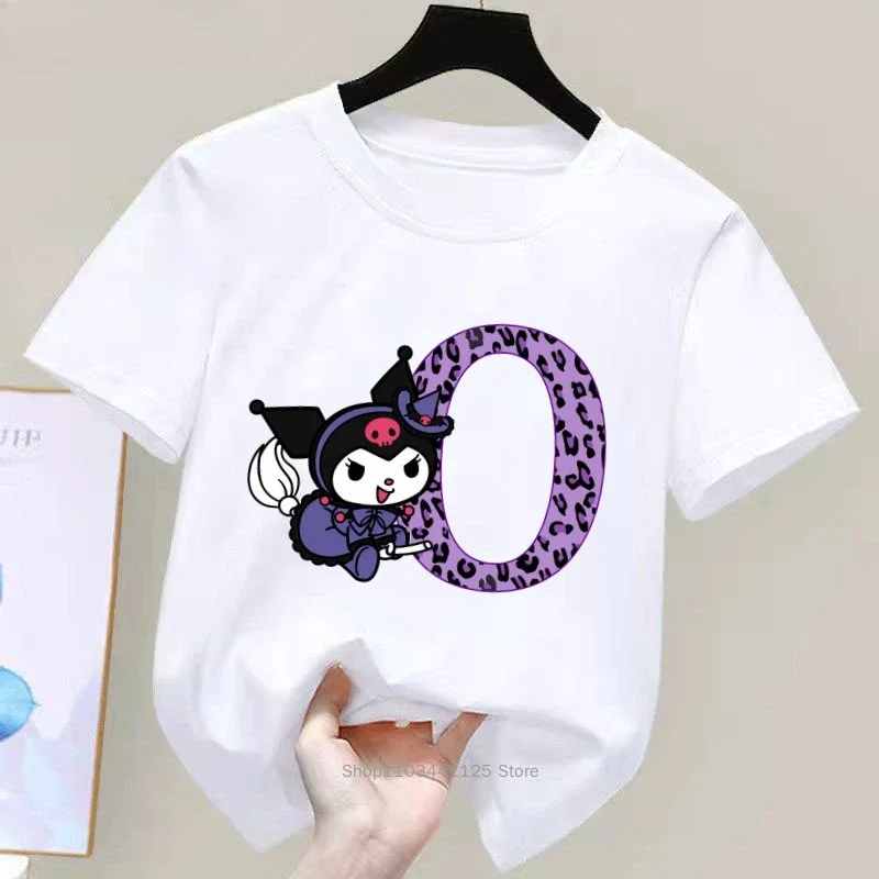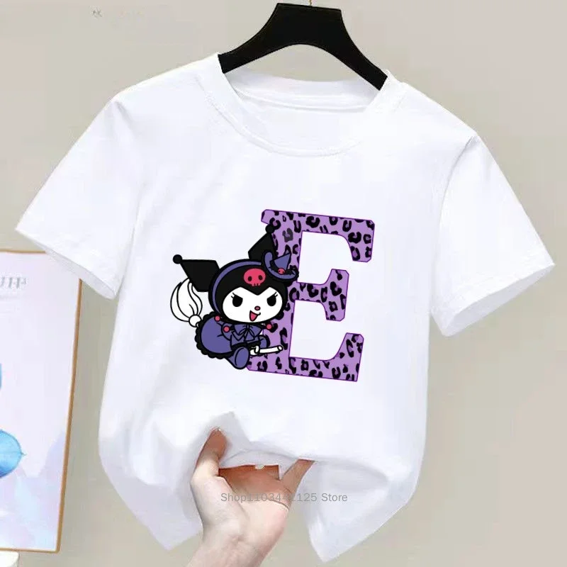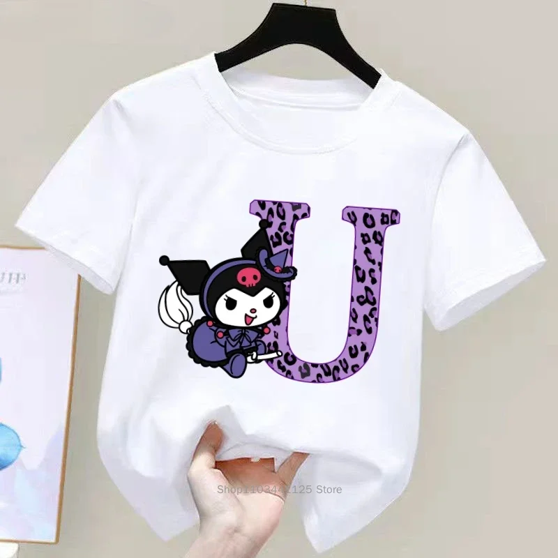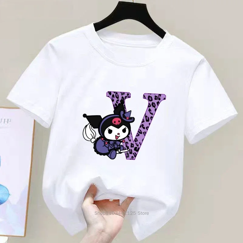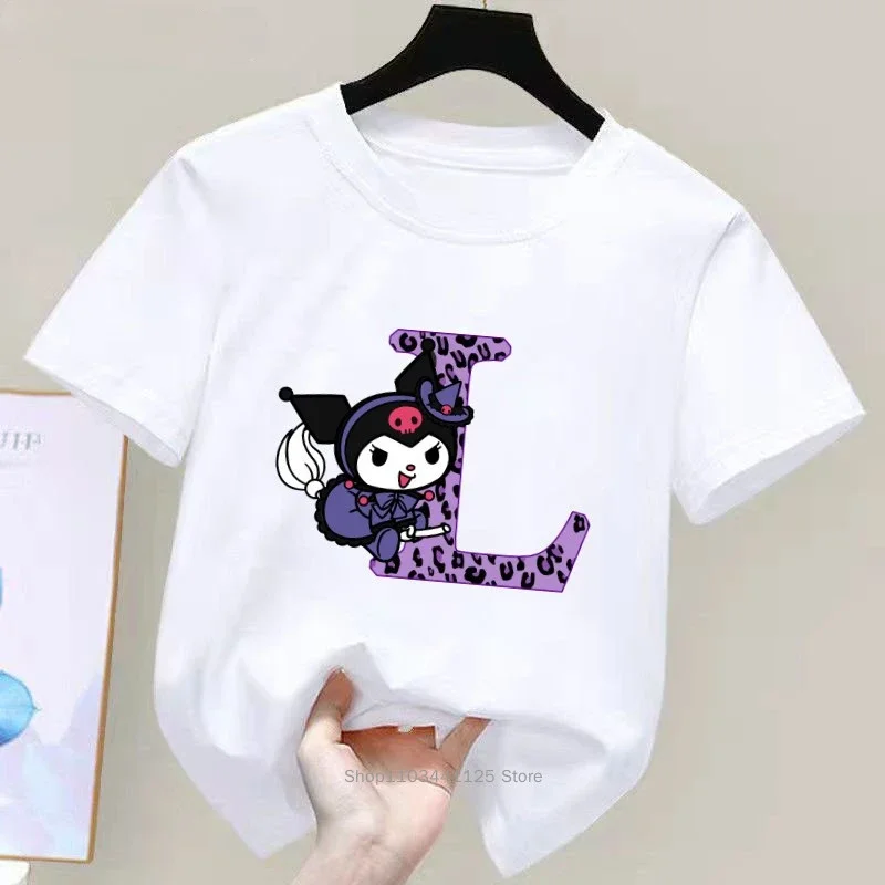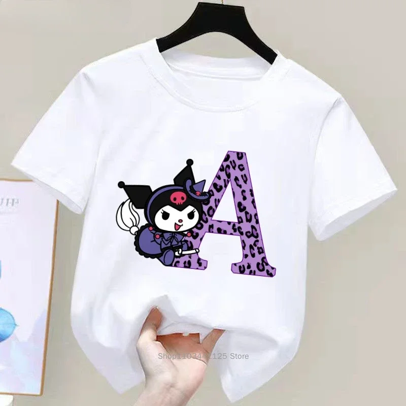 Kuromi Anime Letter A-Z Children's Short-sleeved New Sanrio Summer T-shirt Clothes Girly Heart Soft Clothes Kawaii Birthday Gift