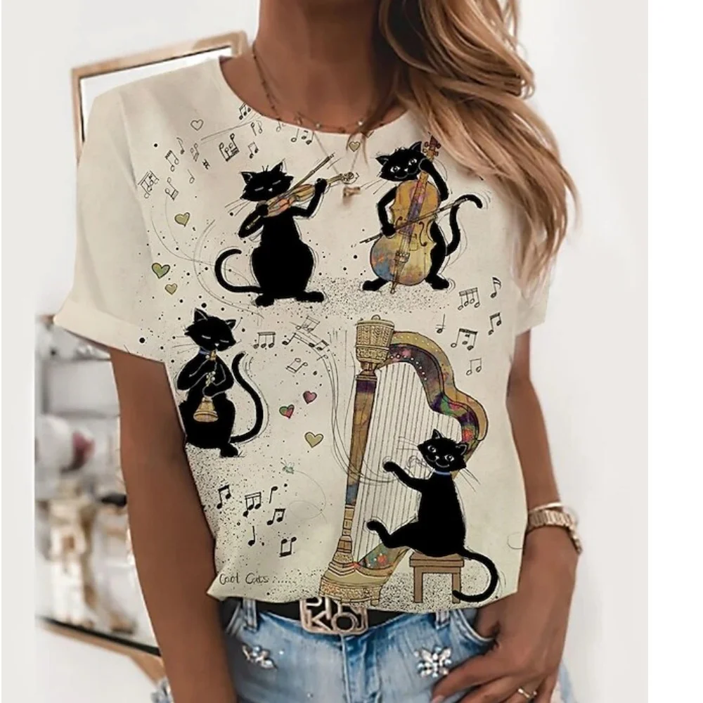 2024 New Style T-shirt For Women Music Cat Graphic Print Female Oversized T-Shirt Summer Women Clothing Short Sleeve Fashion
