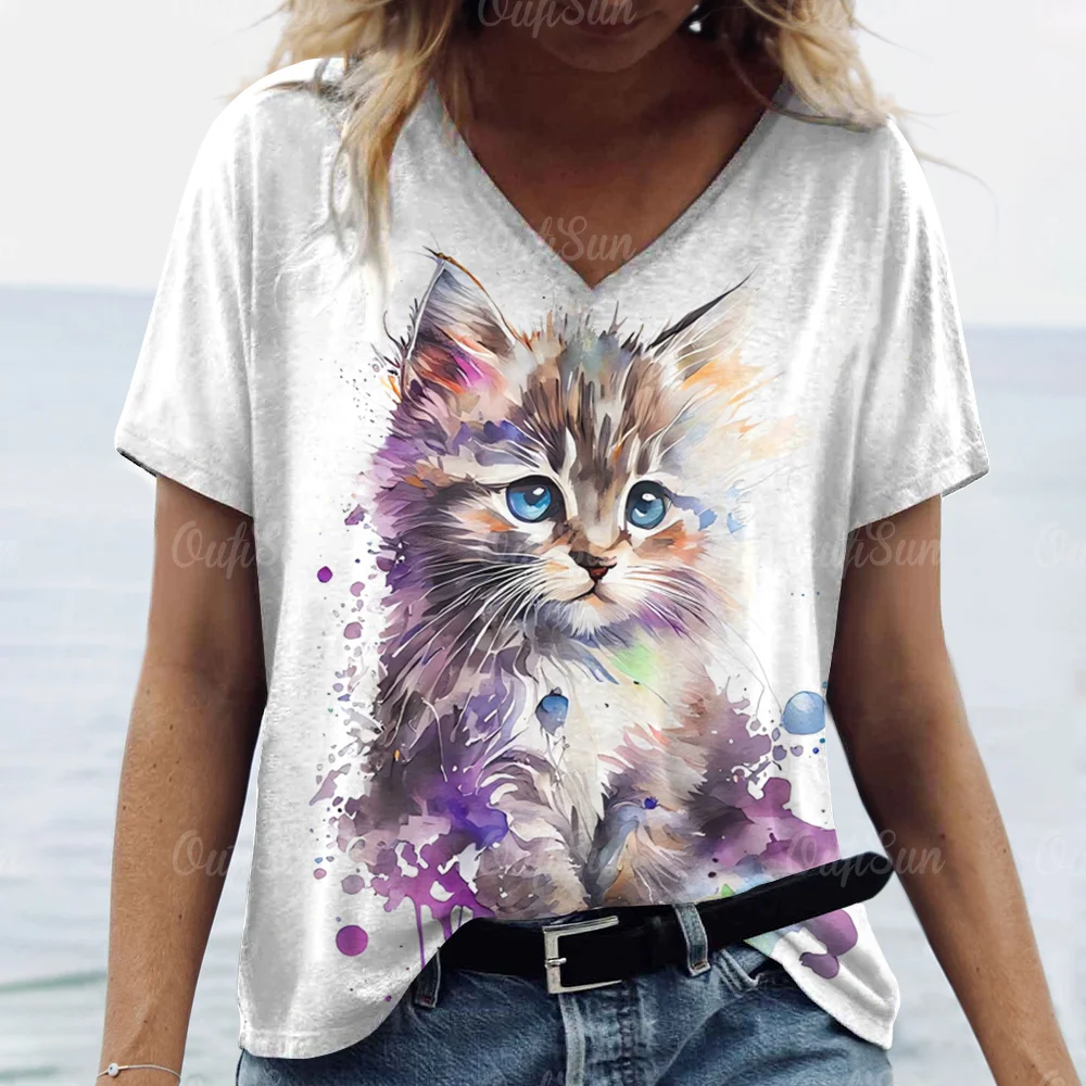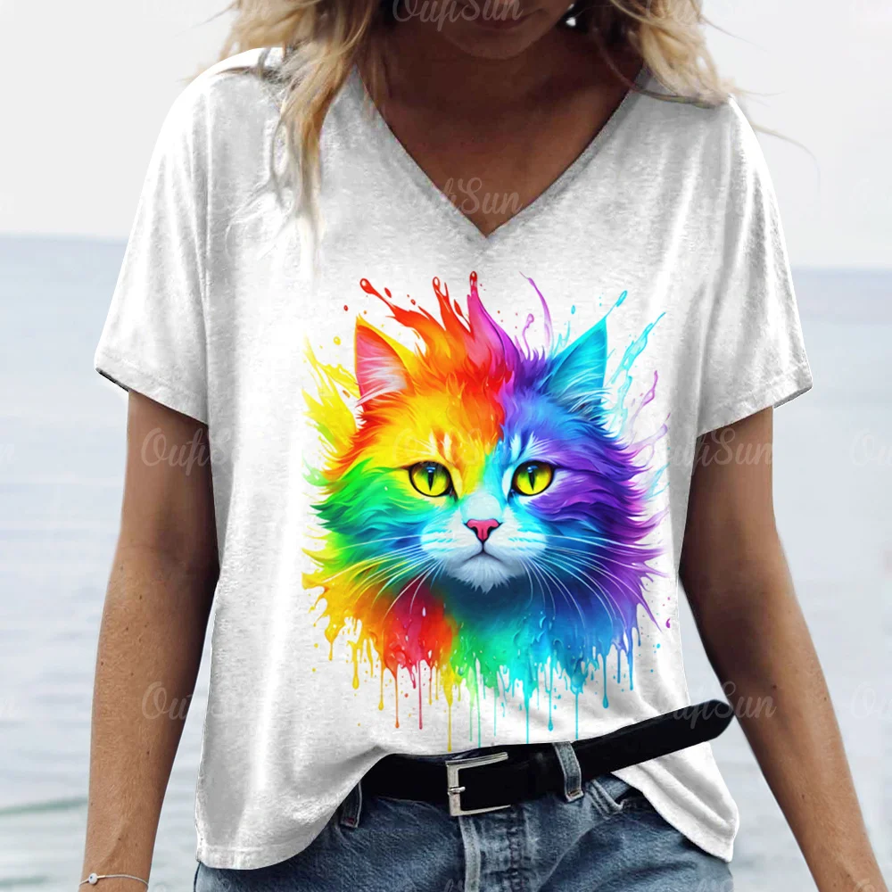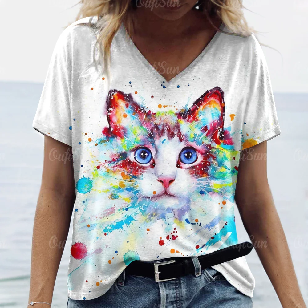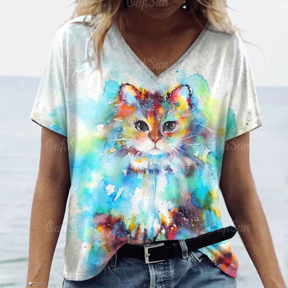 2024 Top Women Tie-dye Cat Printed T-Shirt For Women's Oversized T-Shirts Women's Trending Clothing Summer Short Sleeve Cheap