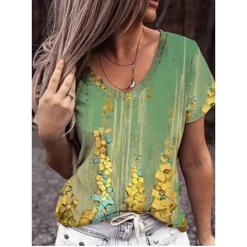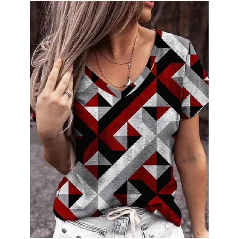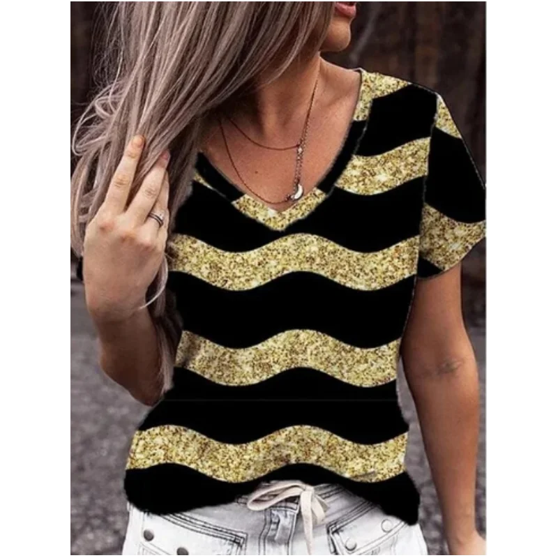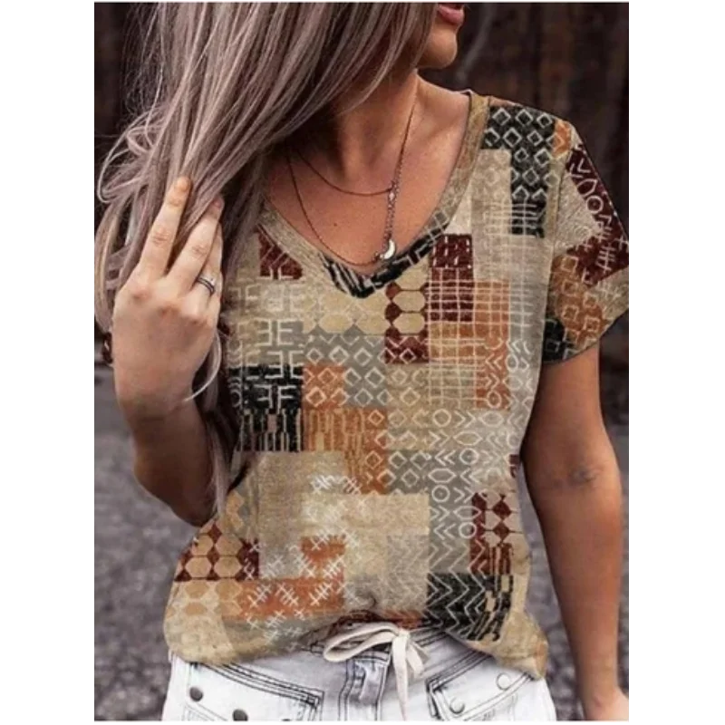 New women's top T-shirt with checkered stripes and colorful patterns trendy style short sleeved T-shirt women's summer new style
